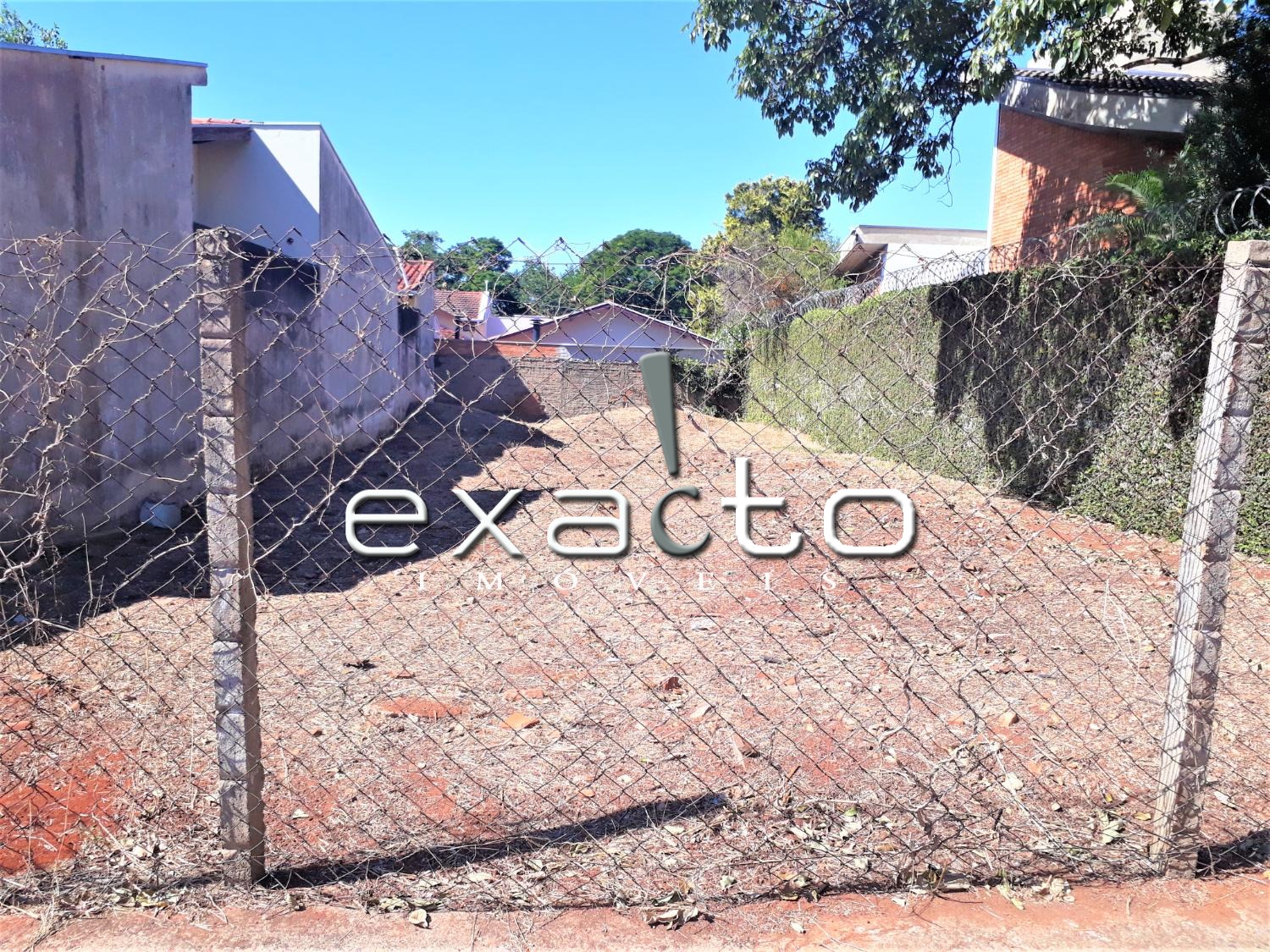 Ótimo terreno de esquina, plano, todo murado com portão de correr na lateral do terreno, com galpão aberto, algumas árvores...
