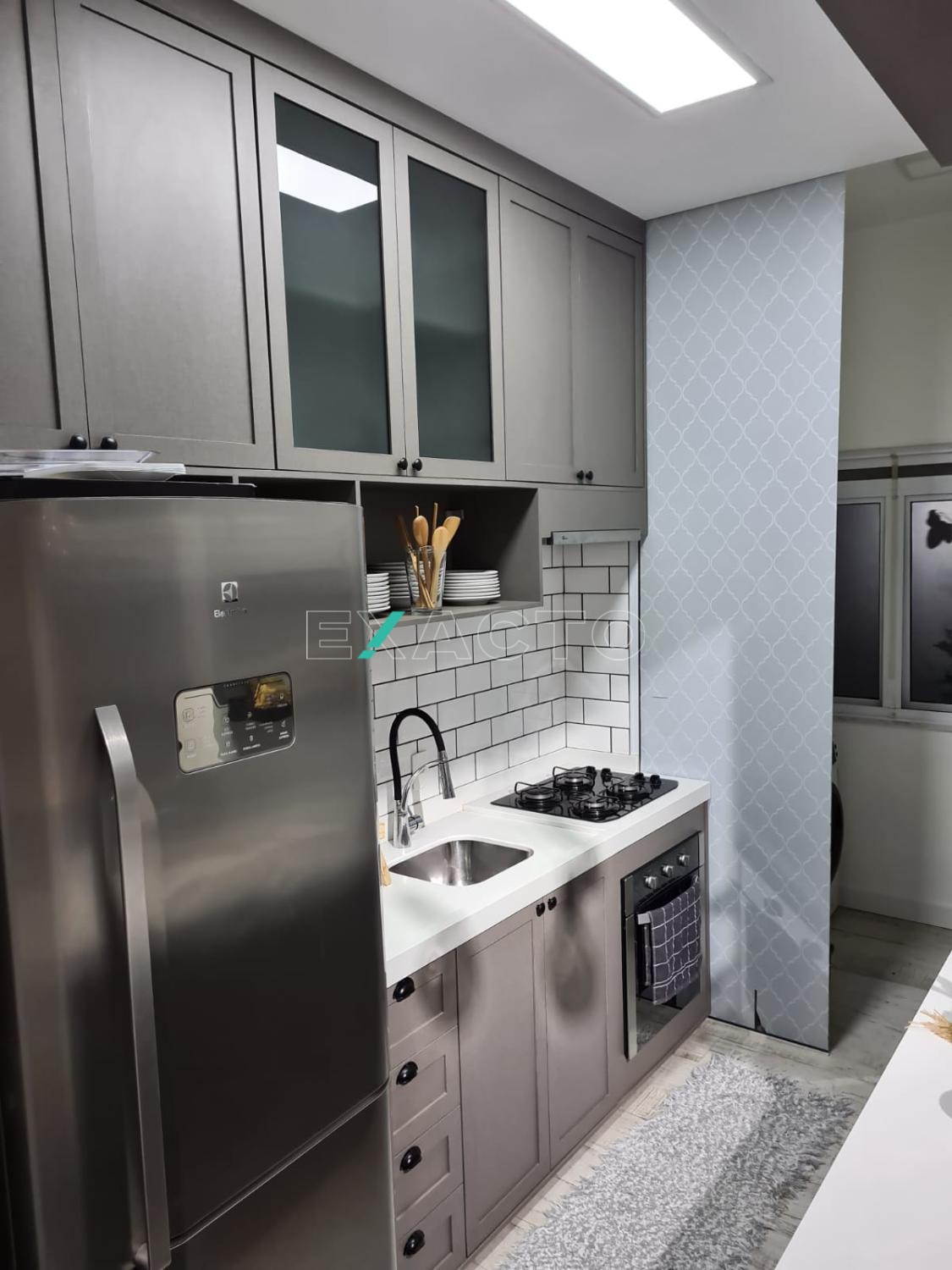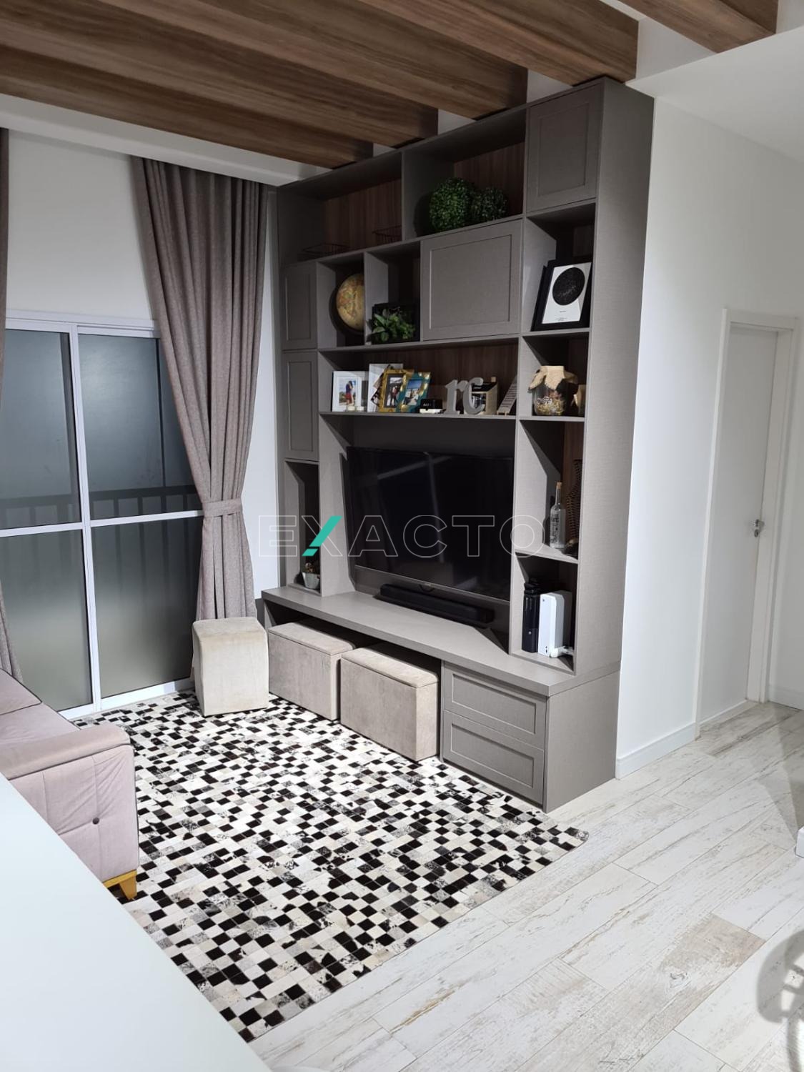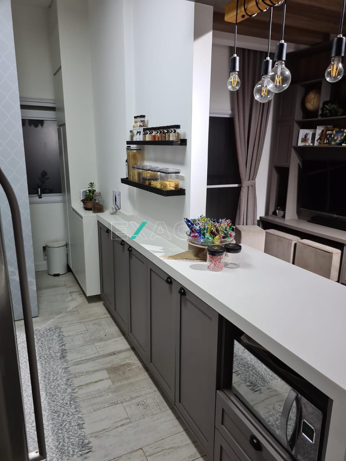 Todos os ambientes ricos em móveis planejados e pé direito de 3,15m com vigas aparentes na sala. 1 vaga de garagem descoberta.