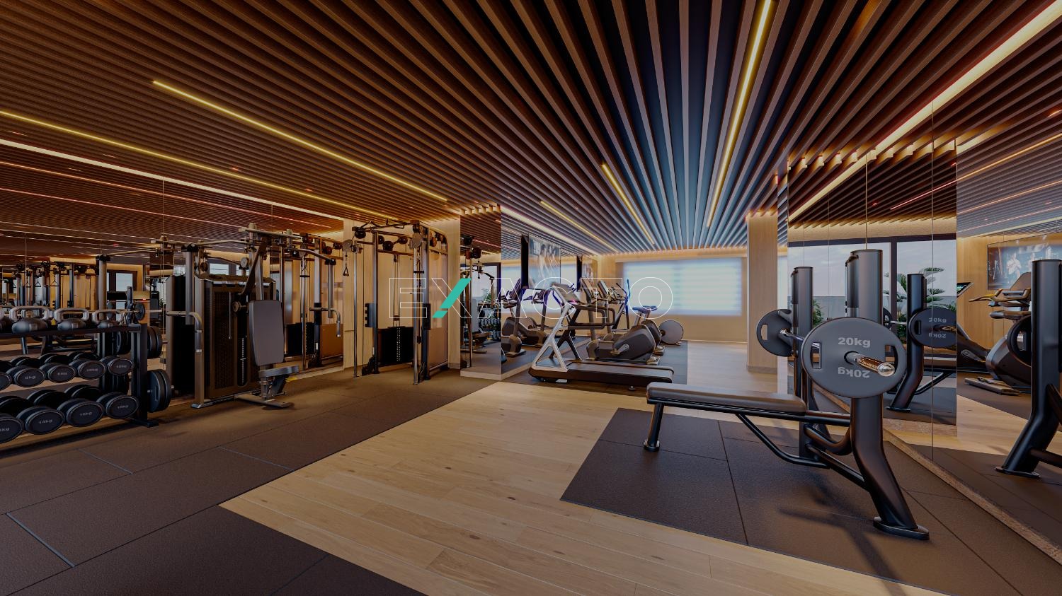 •Fitness center com equipamentos modernos
