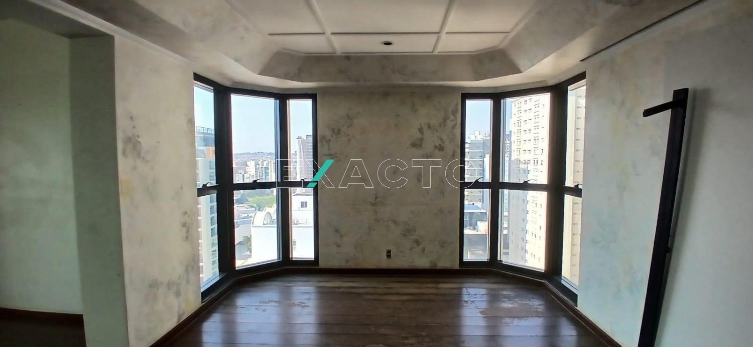 Apartamento à venda 4 suítes no Cambuí, Campinas. Excelente apartamento com 568,56m² privativos. Possui hall de entrada exclusivo, living com sala de estar ampliada e varanda, sala de TV com varanda, sala de jantar e sala de almoço, lavabo, cozinha, despensa, área de serviço com lavanderia, 2 dormitórios de serviços e banheiro de serviço. Todas as 4 suítes são avarandadas. A suíte máster possui closet masculino e feminino, amplo banheiro com cuba dupla e banheira de hidromassagem. Localizado em uma das regiões mais valorizadas do Cambuí.