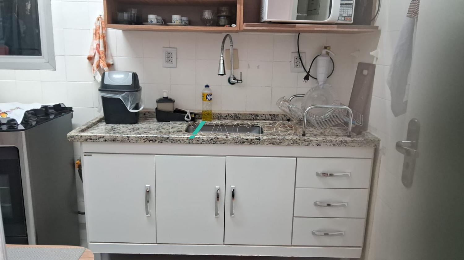 2 dormitórios com armários embutidos sendo 1 suite, banheiro social completo, sala de estar e jantar com sacada,cozinha com armários área de serviço e banheiro de empregada.