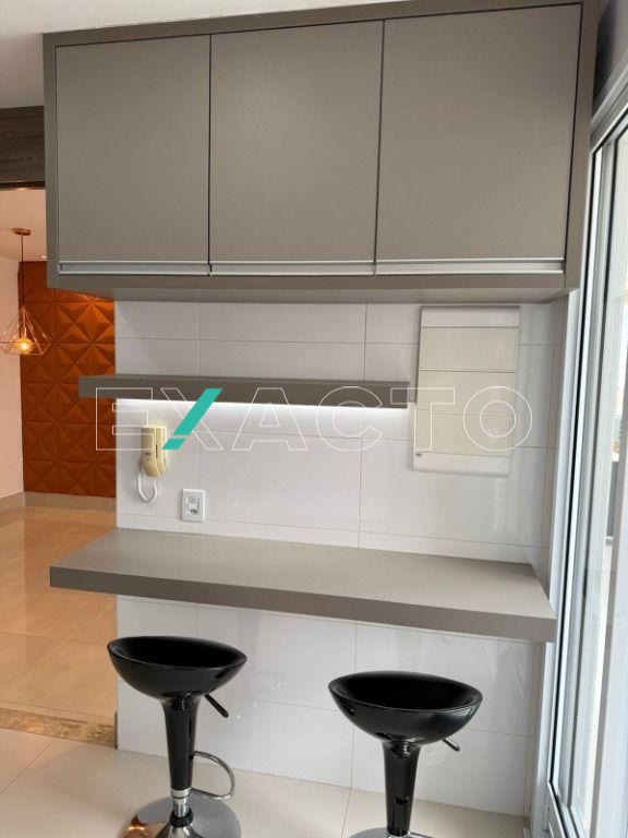 A cozinha planejada possui fechamento total para a sala, espaço para geladeira side-by-side e uma prática mesinha para refeições rápidas. A área de serviço conta com armários planejados. O apartamento oferece ainda 2 vagas de garagem cobertas e paralelas, proporcionando maior comodidade.