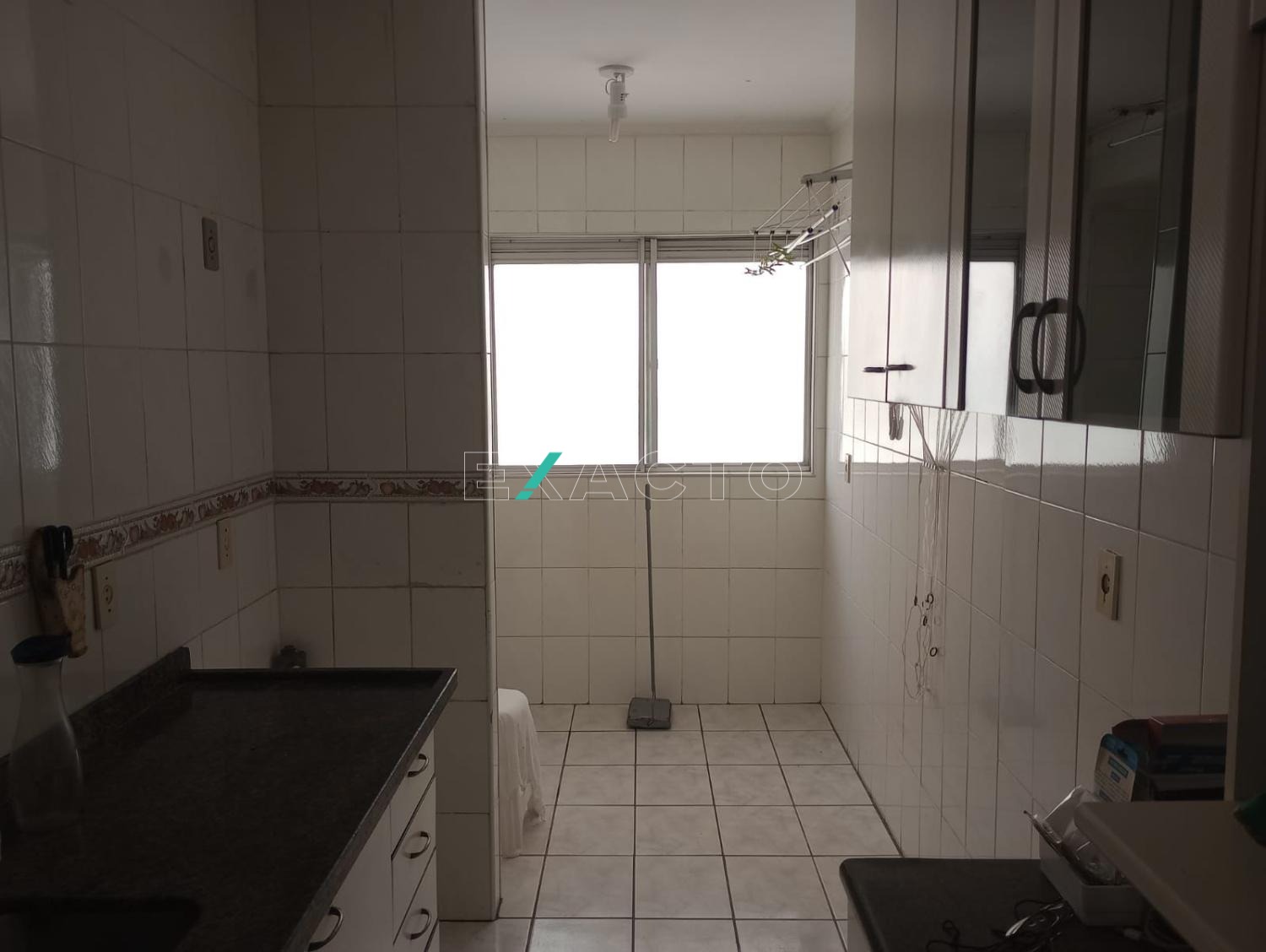 Apartamento de 2 quartos com armários, 1 banheiro social, sala, cozinha com planejados, área de serviço e 1 vaga de garagem.
