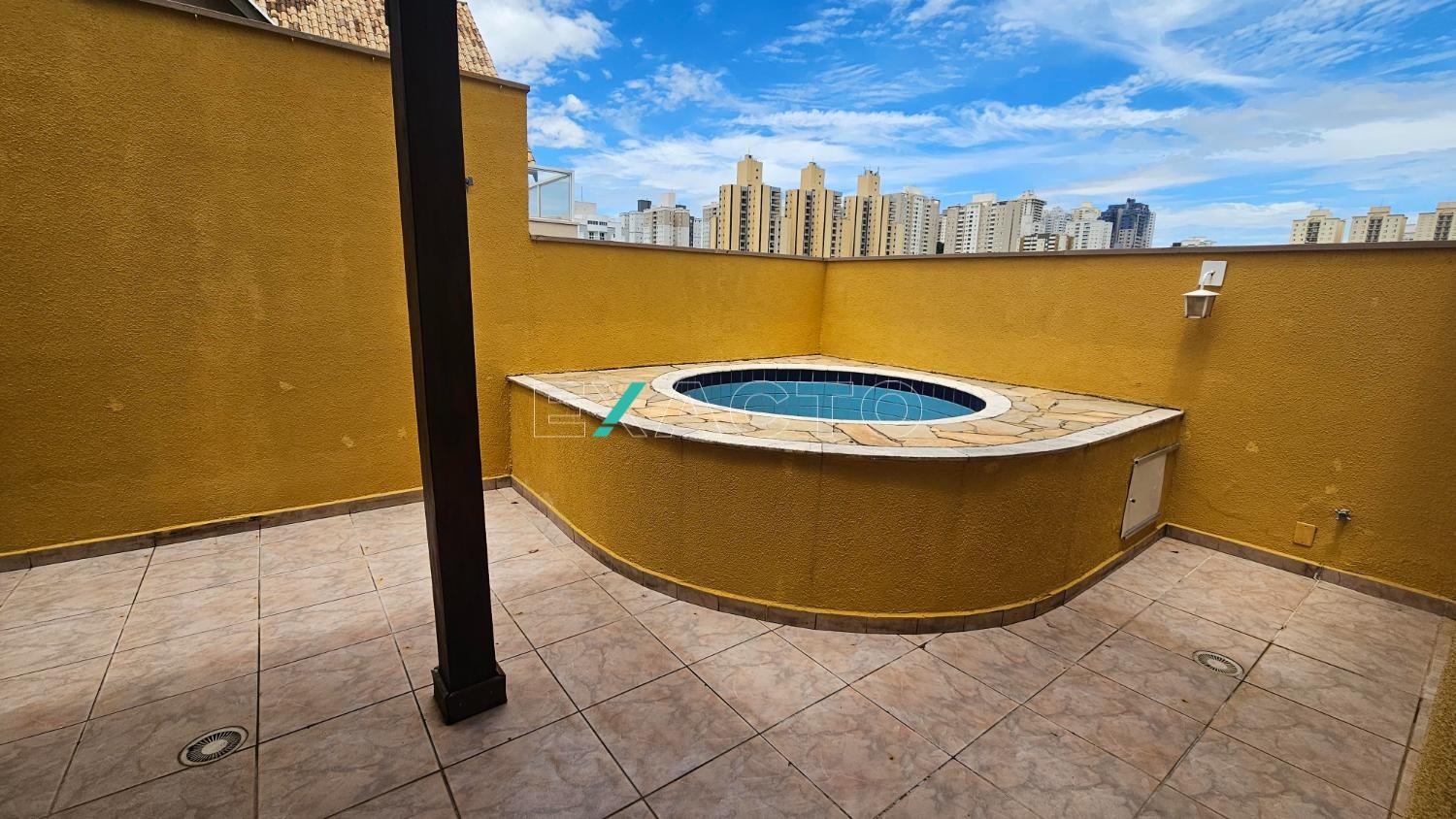 Cobertura triplex em excelente localização, 2 salas, 2 dormitórios sendo 1 suíte, com armário e ar condicionado, escritório, 3 banheiros, cozinha americana com armários, área de serviço, Jacuzzi e churrasqueira na cobertura, 2 vagas de garagem, área de lazer com piscina, churrasqueira, salão de festas e playground.