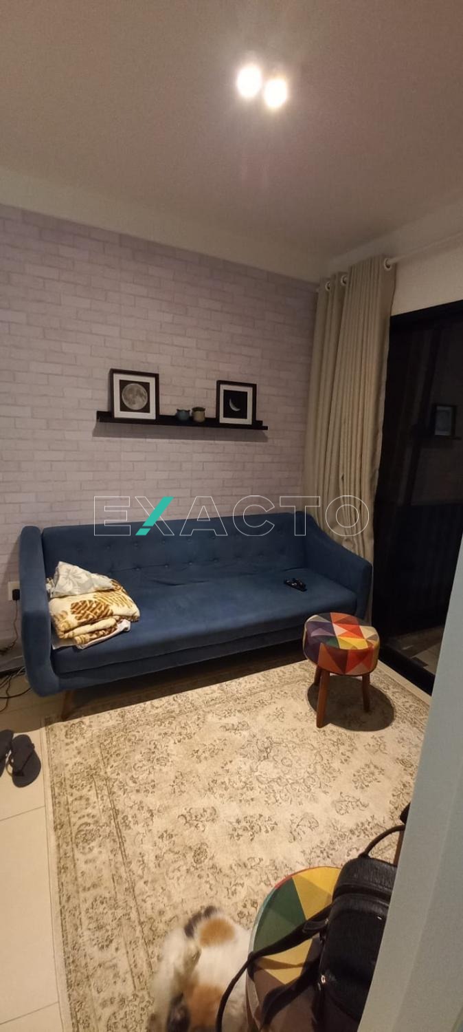 1 quarto (suíte), sala, sacada, cozinha, área de serviço e banheiro.