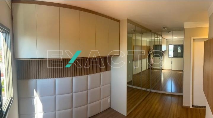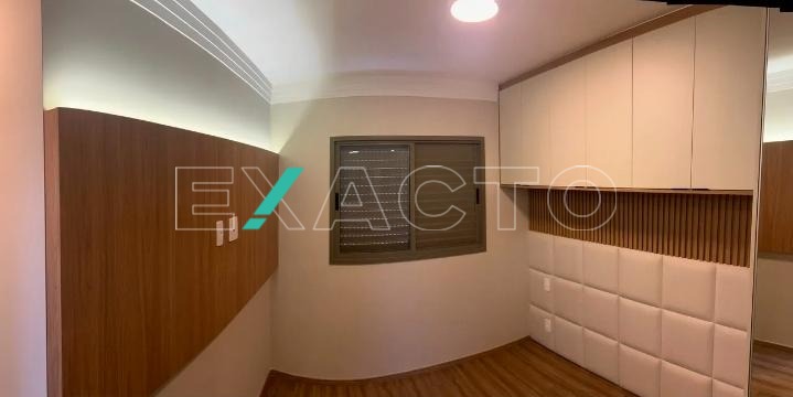Moderno, com LEDS nos móveis, muitos armários, suíte com closet e armários com portas de espelho.