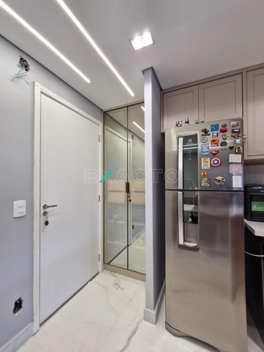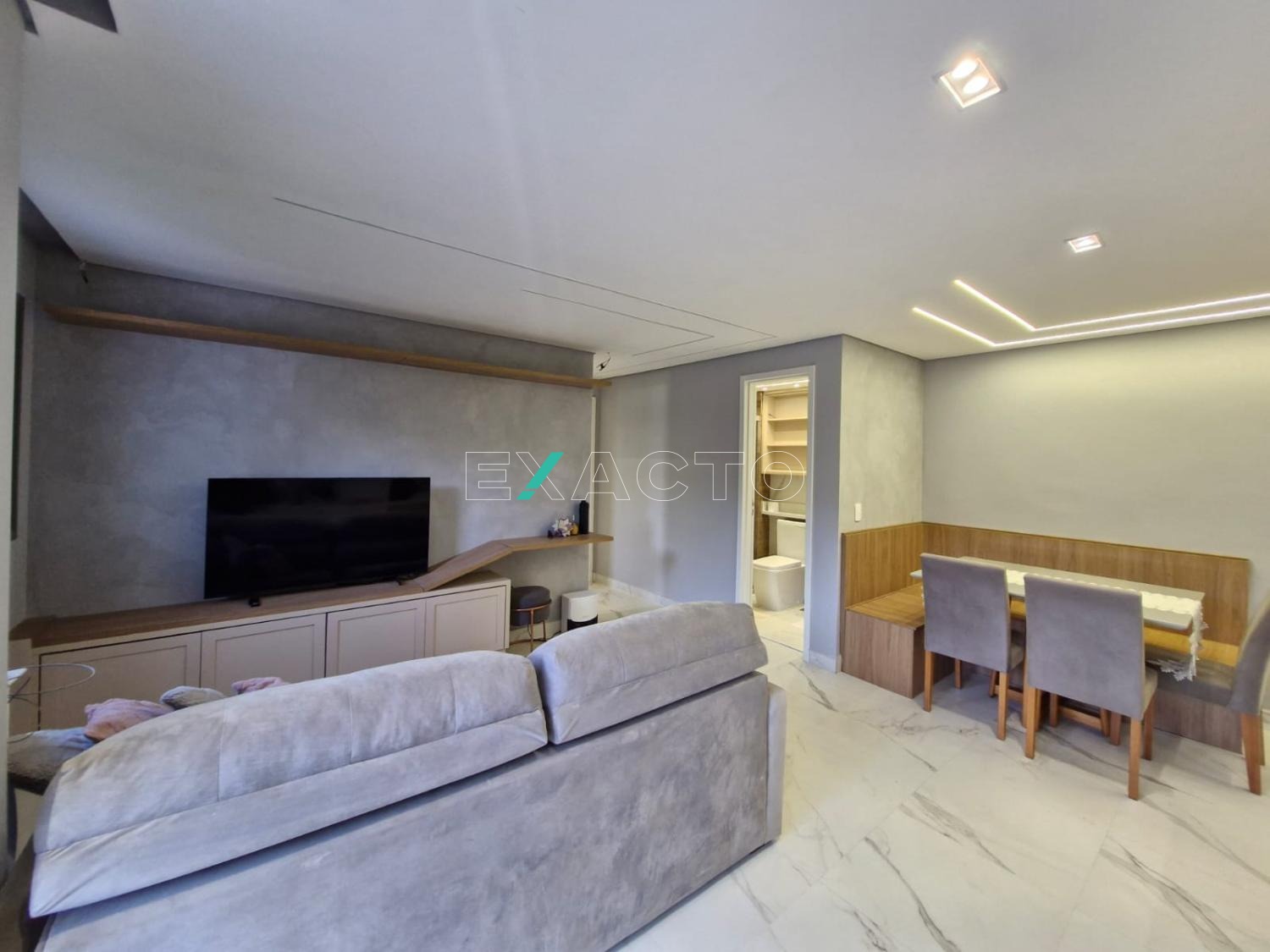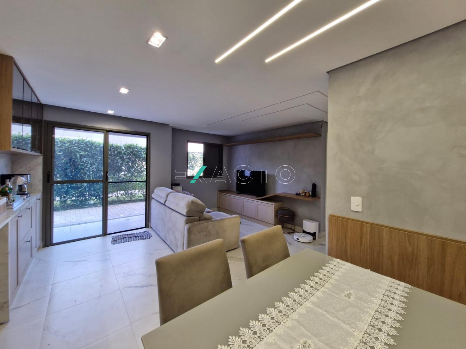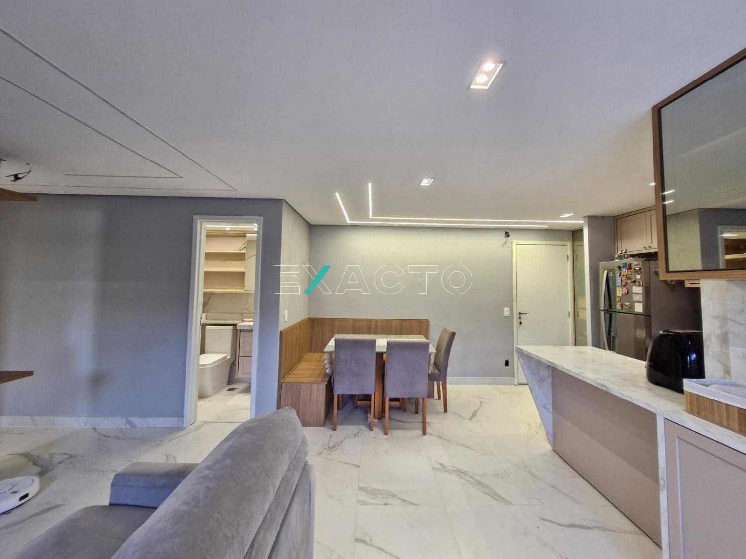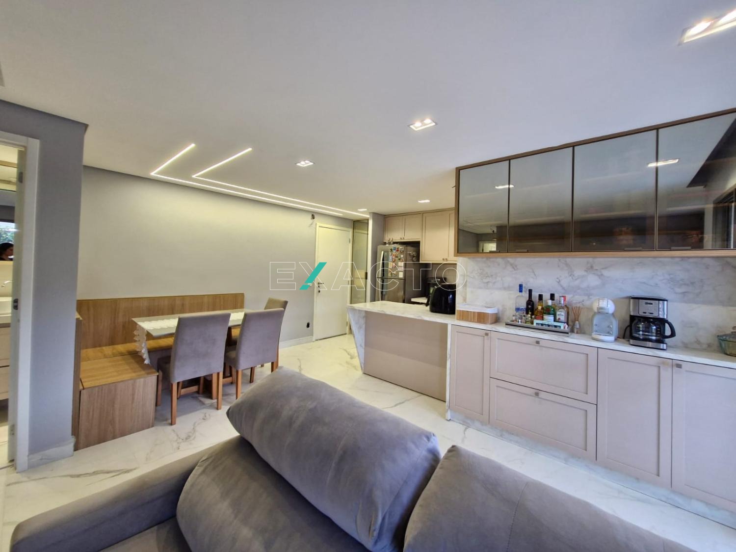 O apartamento foi totalmente reformado: piso porcelanato, teto rebaixado, iluminação em led embutido, pedras em lâmina ultra compacta (pedra sintética branca que não mancha e não precisa impermeabilizar), pintura com detalhe de efeito cimento queimado, armários 100% planejados em todos os cômodos.