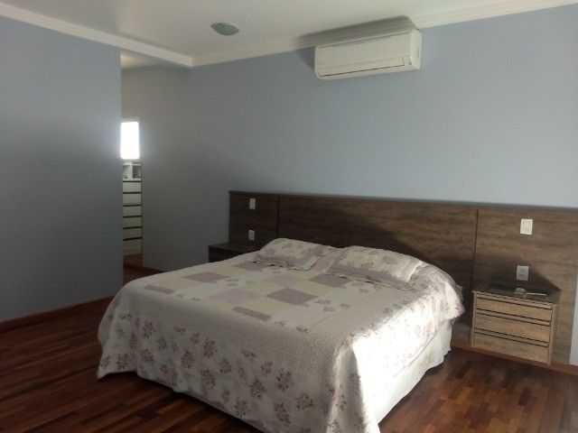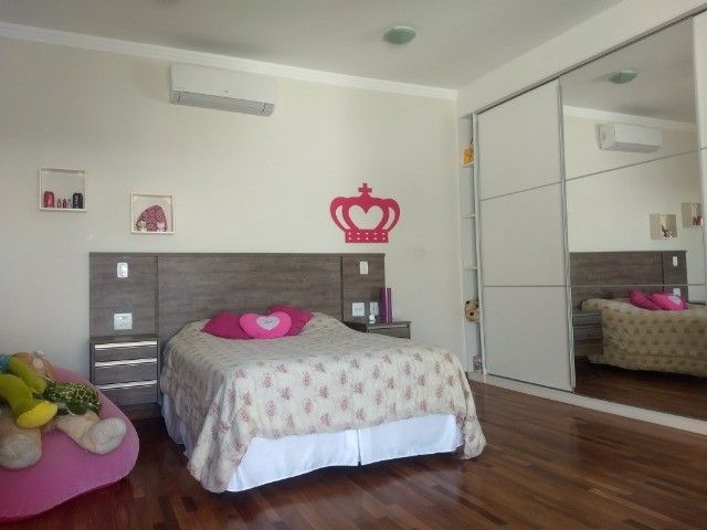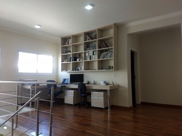 Lindo sobrado, em condomínio de alto padrão, localização excepcional, o Parque dos Rosedás. São 4 suítes, duas com ar condicionado, sendo 1 máster com closet e banheiro com hidro, bancada com pias duplas, todas as suítes com amplas sacadas, todas as portas balcão automatizadas e telas mosqueteiras e um grande escritório, com um roupeiro enorme, no piso inferior, home Office individualizado, com ar condicionado, salas estar/jantar e ambiente para uma terceira sala, a cozinha grande com despensa e uma grande área de serviço, com um quarto de empregada com banheiro, lavabo, churrasqueira integrada a casa com piscina de raia de 2 X 12 aquecida, com hidro e banheiro de apoio, 2 garagens cobertas e 4 vagas descobertas.Situada no meio do condomínio, sol da manhã.Condomínio: piscina adulta e infantil climatizada, salão de festas, espaço gourmet com churrasqueira, academia, copa de apoio, lounge, quadra poliesportiva, playground, gás encanado, guaritas blindadas, ronda 24h, monitoramento por câmeras, fiação subterrânea.