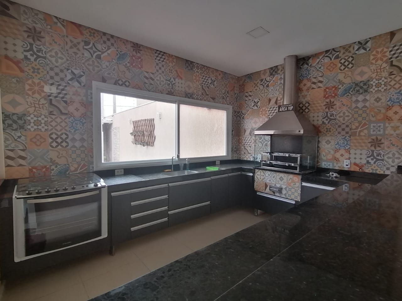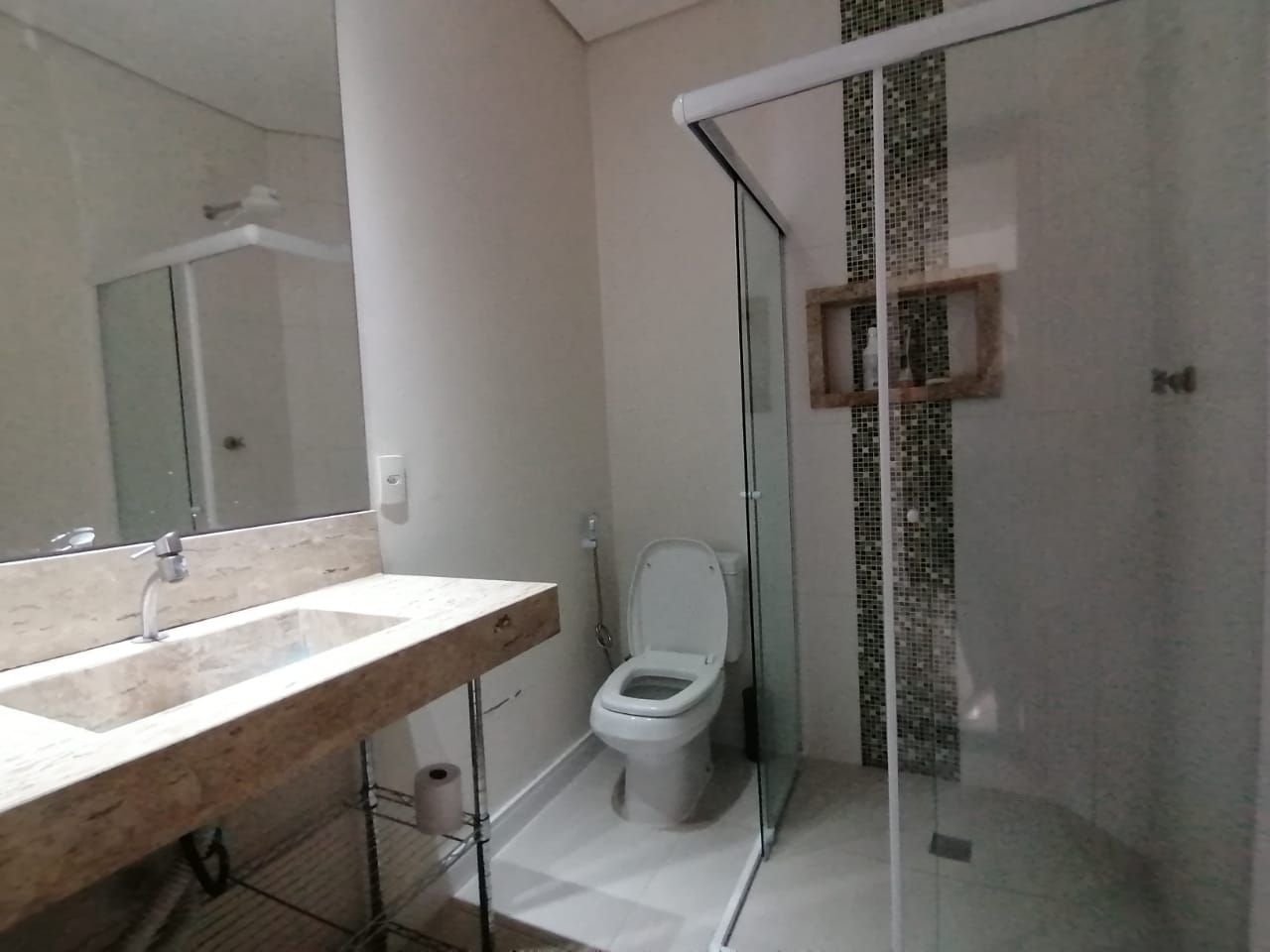 Casa com 3 dormitórios, sendo 2 suítes, 4 banheiros, Ampla sala de estar para 2 ambientes, cozinha americana, ar condicionado, Janelas automáticas, Portão eletrônico