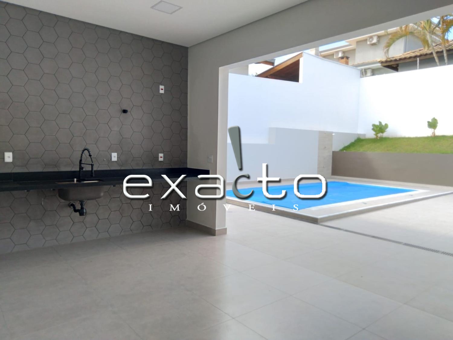 Possui 3 suítes, 1 escritório com entrada independente, sala ampla com pé direito duplo, lavanderia espaçosa e lavabo. Na parte externa uma ampla varanda gourmet integra o ambiente interno com a piscina climatizada, possui banheiro de piscina, depósito, casa de maquinas.