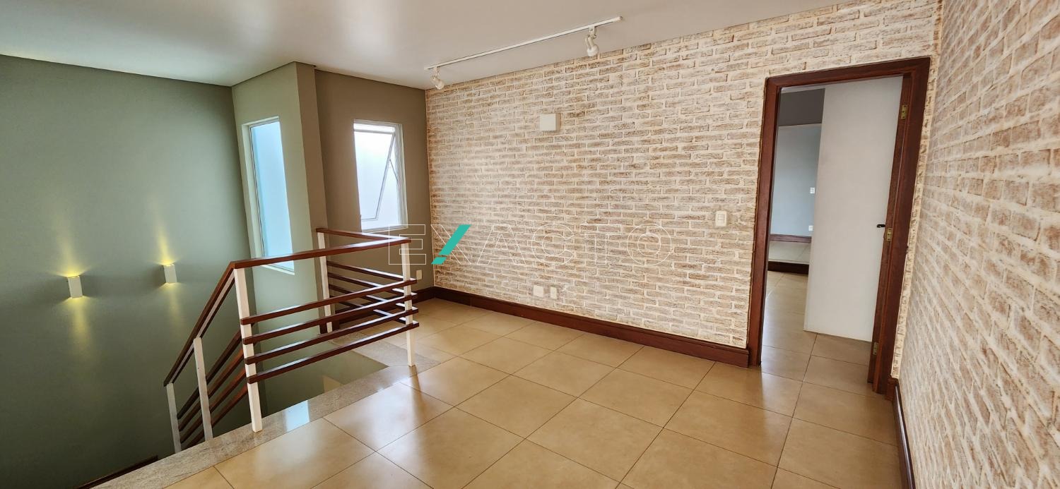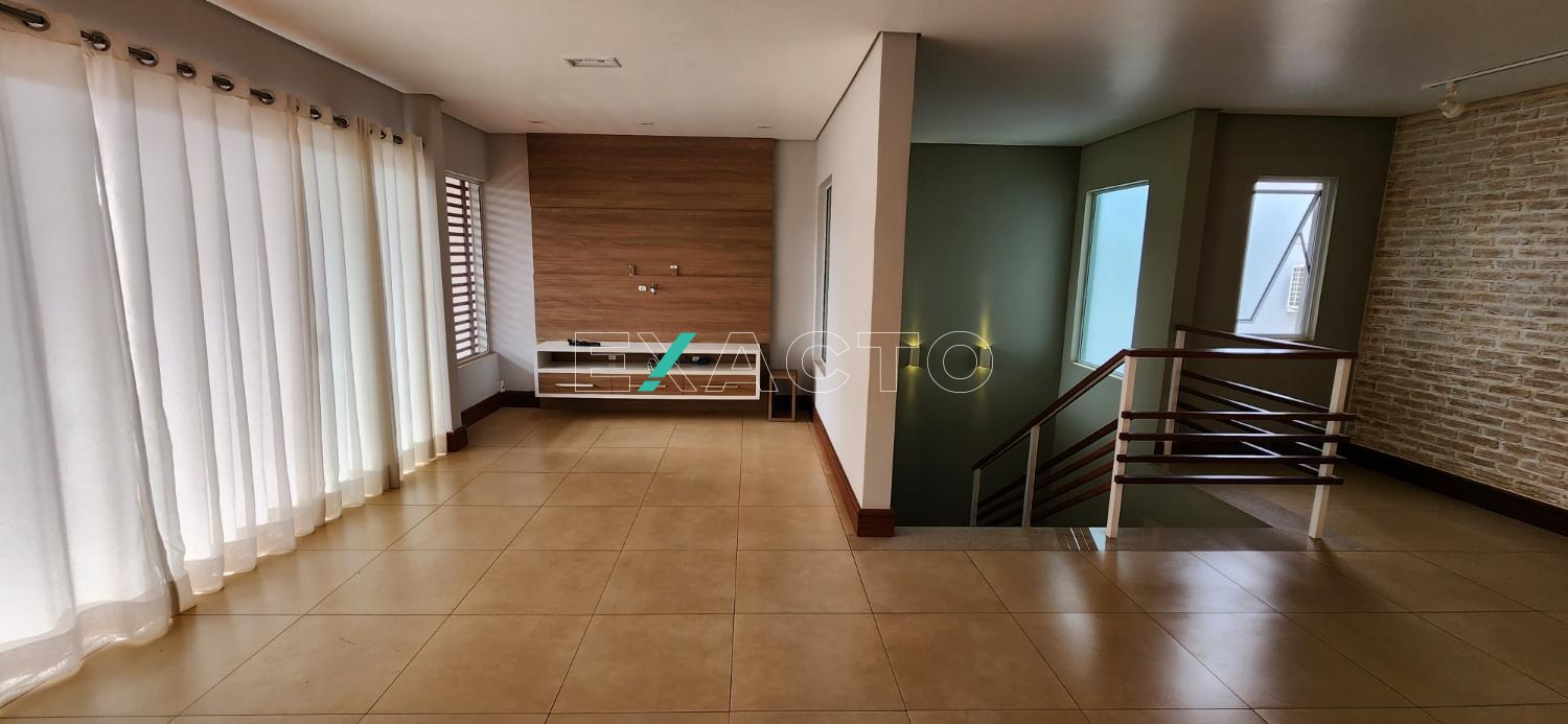 No piso superior esta casa conta com amplo living, sala de tv, varandas espaçosas, dois quartos grandes com móveis planejados e uma suíte master com banheira e closet.