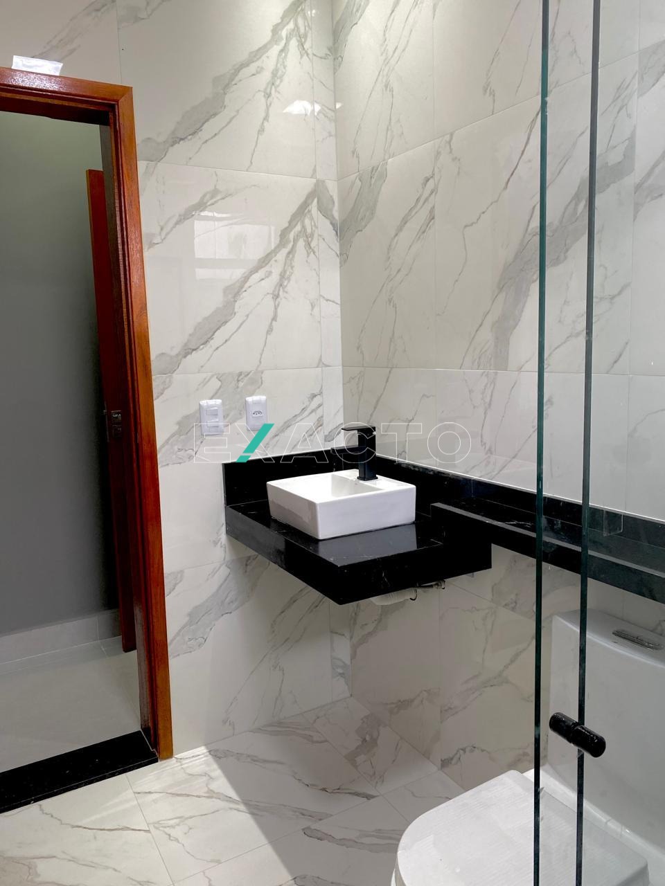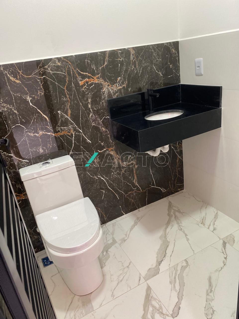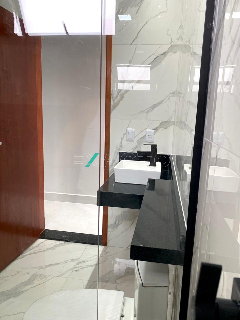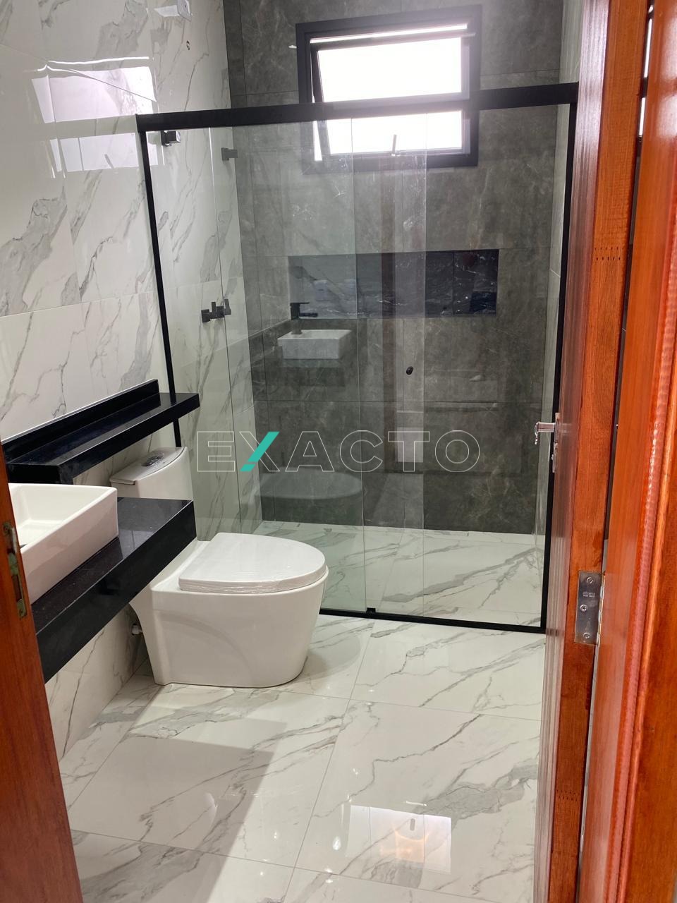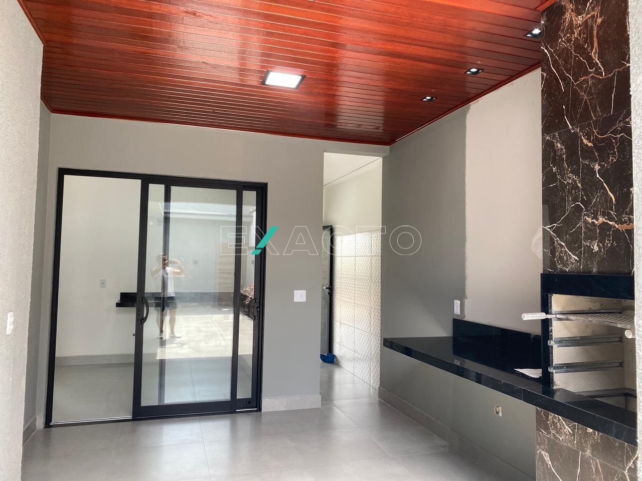 Casa térrea à venda, em condomínio, com sala para 2 ambientes, pé direito de 4,80m, 3 dormitórios, sendo 1 suíte com closet, cortineiros iluminados com LED, porta balcão, e 2 com cortineiro iluminado com LES, janelas automatizadas, banheiro social, cozinha com balcão e pia em mármore, escritório, área gourmet com churrasqueira, balcão, lavabo, lavanderia e vaga para 4 carros (2 cobertas). Conta ainda com pontos para ar condicionado, água quente, sistema boiller, esquadrias pretas, fachada rica em detalhes.