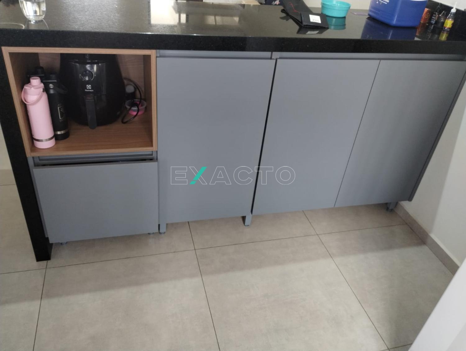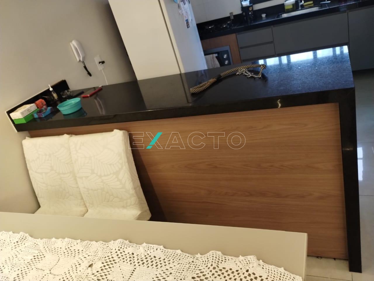 Sala e cozinha integrados (cozinha americana) com armários