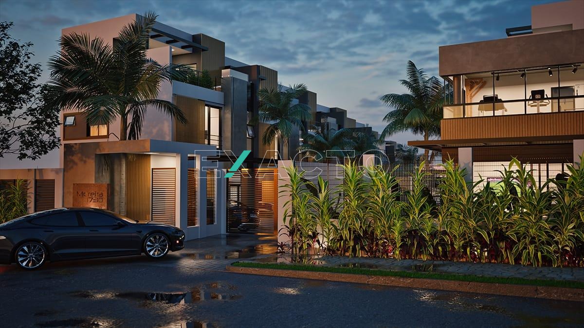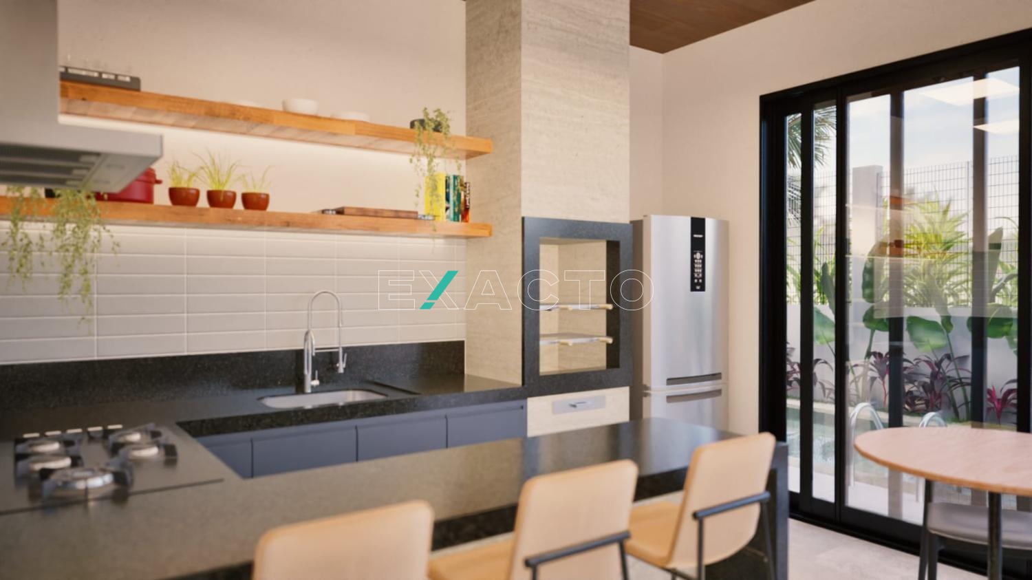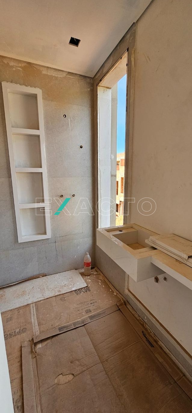 A casa possui no piso térreo sala de estar e jantar, com iluminação de LED, lavabo e cozinha americana.
