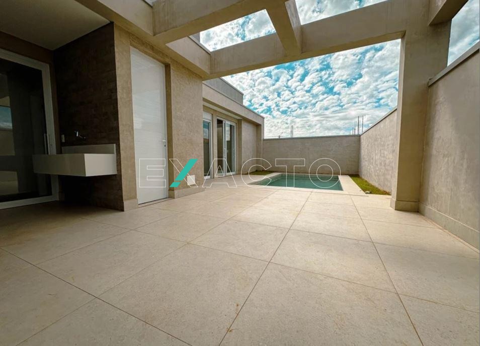 Projeto arquitetônico contemporâneo, Fino acabamento, todas bancadas em quartzo stone, sala com pé direito duplo, 4 suítes, sendo uma máster com closet, cozinha americana integrada com a área gourmet, sala de estar , jantar e sala de TV, lavabo, banheiro social, dispensa, área de serviço e piscina.