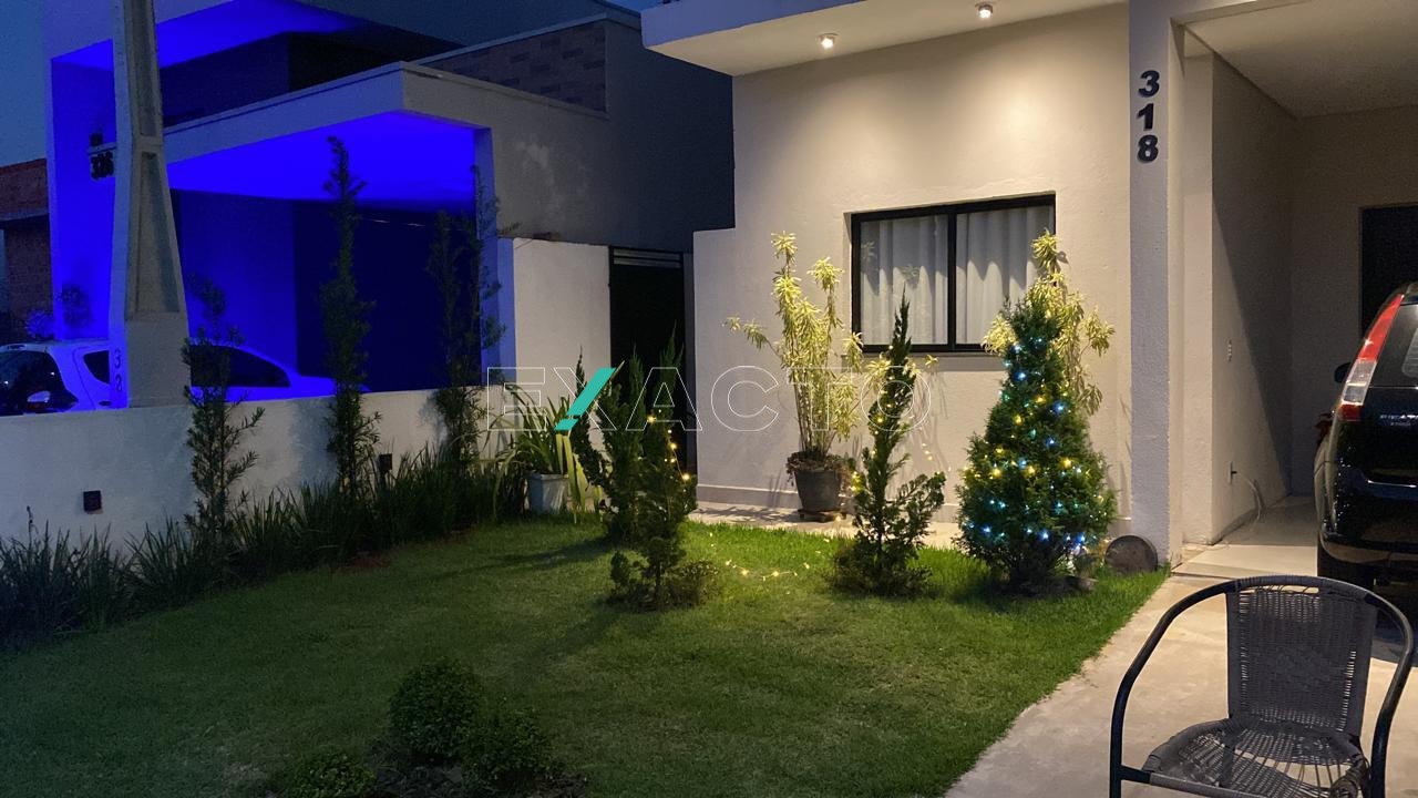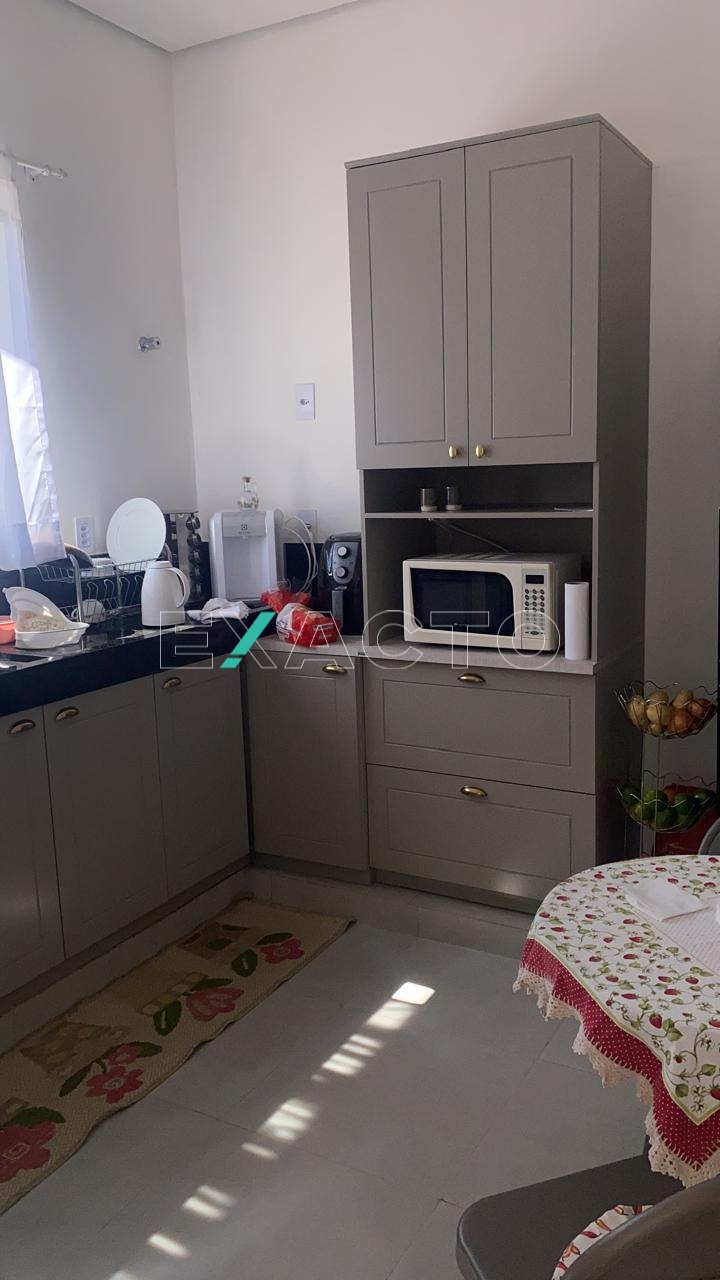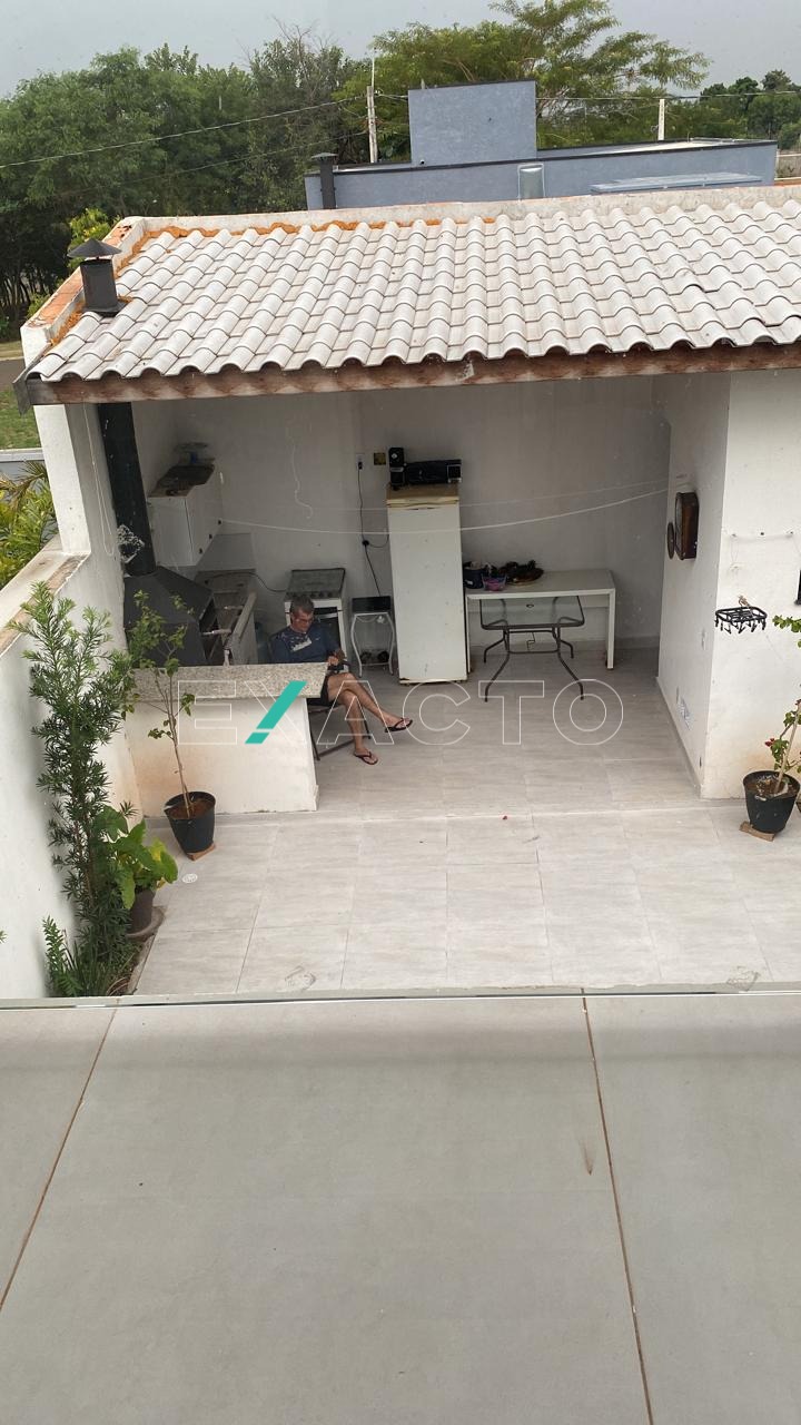 Sobrado à venda no condomínio Terras da Estância, em Paulínia. Pavimento superior conta com 3 dormitórios, sendo 2 suítes e, no pavimento térreo, sala para 2 ambientes, lavabo, cozinha com armários, área de serviço e amplo quintal com área gorumet, banheiro e quarto (depósito).