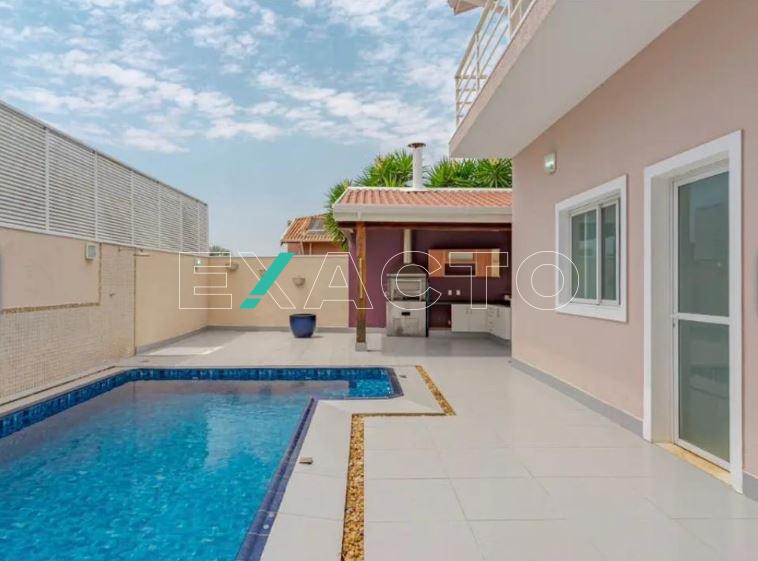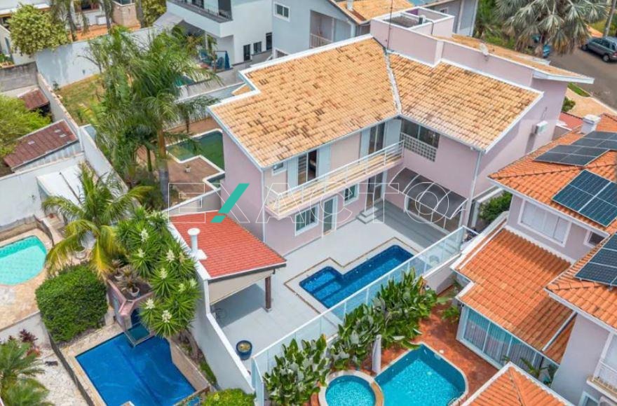 Excelente sobrado à venda no Residencial Paineiras, em Betel, Paulínia, composto por 4 suítes com closet, todas com ar condicionado e varanda, sendo 1 master. 3 salas - uma no pavimento térreo, que poderá ser revertida para mais 1 quarto, a de TV, totalmente acústica, lavabo, jardim de inverno, possibilidade de instalação de elevador, cozinha com despensa, lavanderia, quintal com piscina com casacata, área gourmet com churrasqueira, sauna com vestiário e banheiro. O imóvel conta ainda com acabamento em parcelanato em todos os ambientes (inclusive na sauna), rico em planejados, teto rebaixado, sanca, sistema de aquecimento à gás, ótimo paisagismo e vaga para 4 carros.