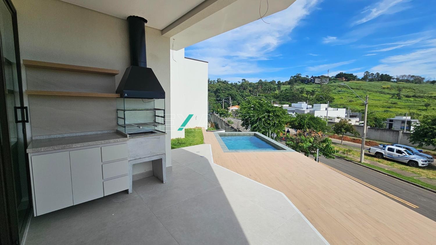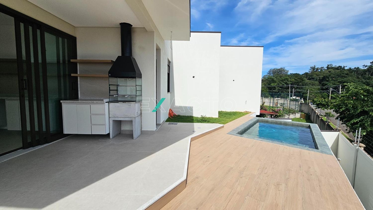 A casa possui 4 quartos, sendo 3 suítes uma máster com closet, sala com pé direito duplo, living para 2 ambientes, cozinha americana, lavabo, área de serviço, área gourmet com piscina,2 vagas cobertas.