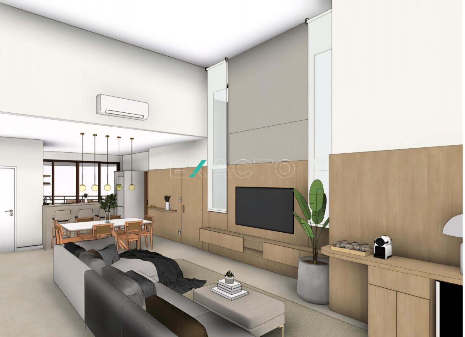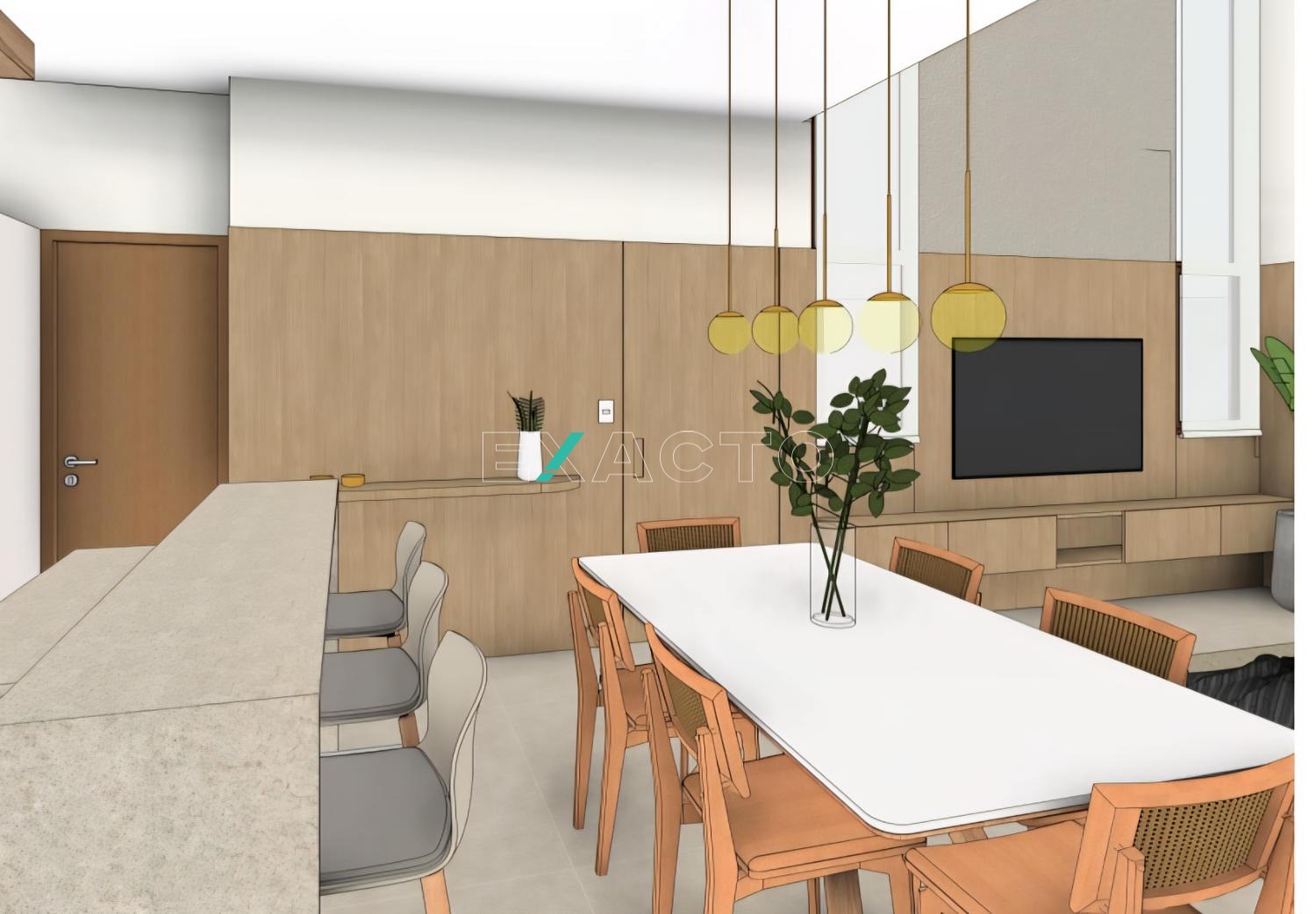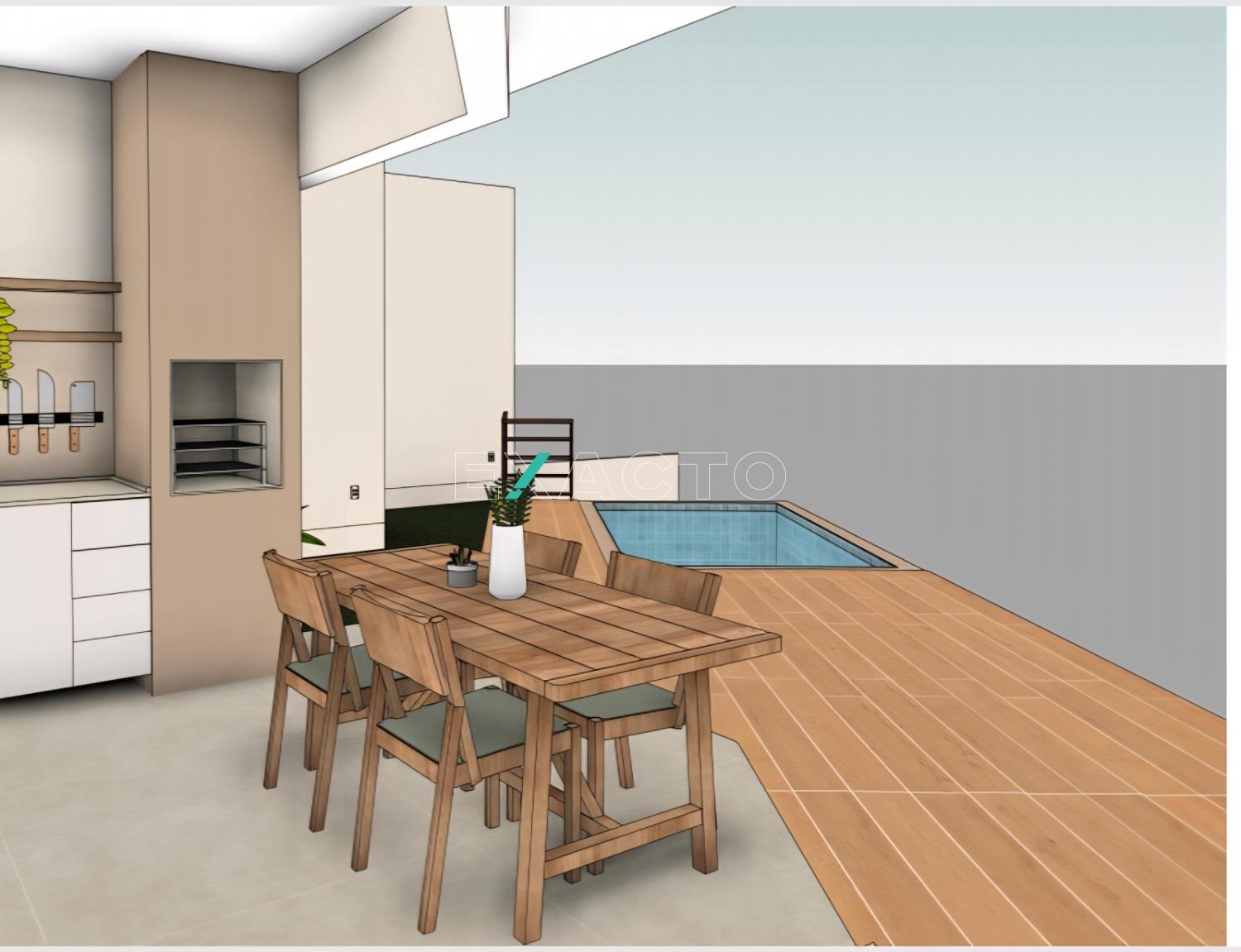 A casa possui 4 quartos, sendo 3 suítes, sala com pé direito duplo, living para 2 ambientes, cozinha americana, lavabo, área de serviço, área gourmet com piscina,2 vagas cobertas.