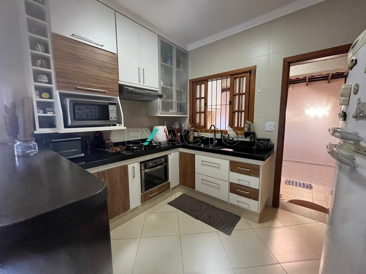 Cozinha americana planejada, 4 vagas de garagem (2 cobertas) e portão eletrônico.