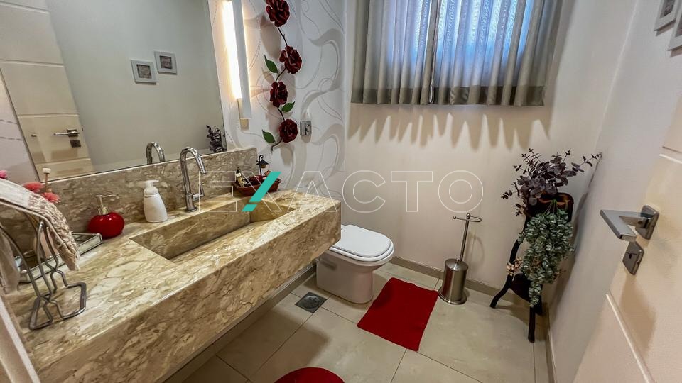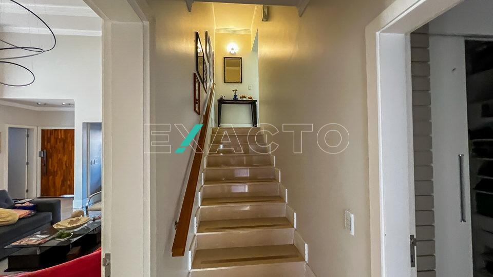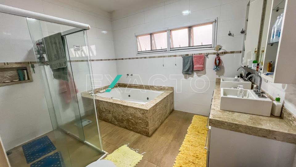 O imóvel possui 4 quartos sendo 2 suítes no térreo, 1 com closet e banheira e 2 quartos no piso superior com 1 banheiro social.