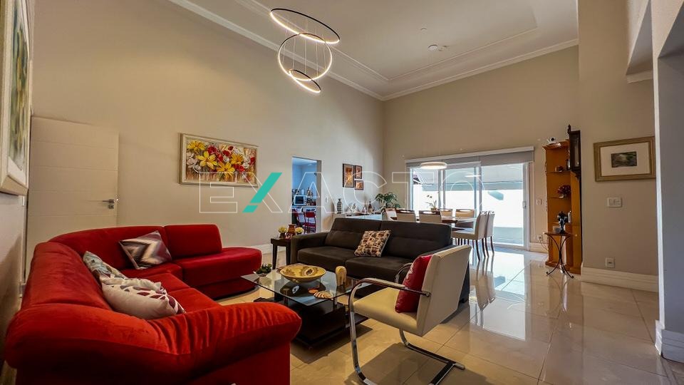 O imóvel conta com excelente infraestrutura, distribuídos em ampla sala de visitas e jantar com pé direito duplo, sala de TV, cozinha planejada com despensa, lavanderia com quarto e banheiro de empregada com armários embutidos.