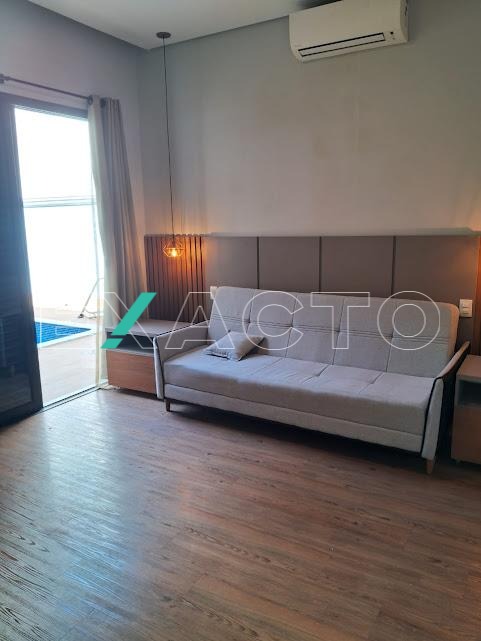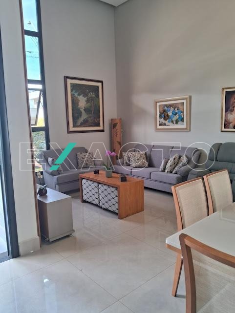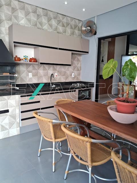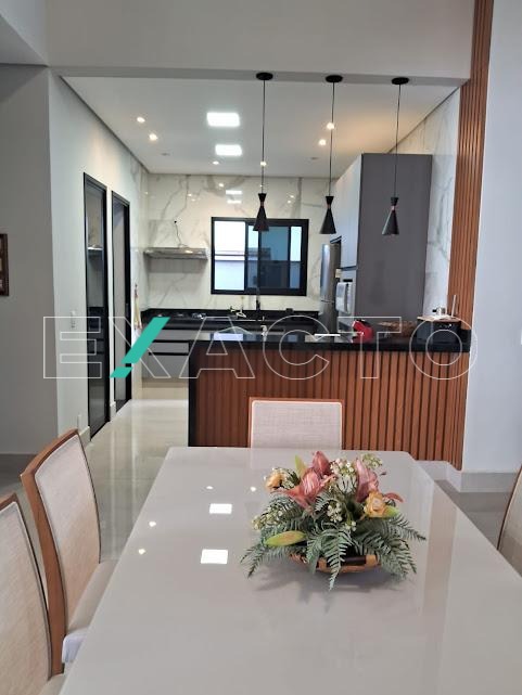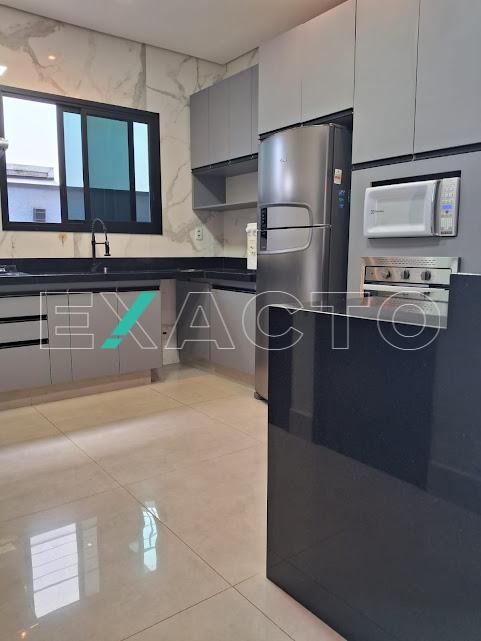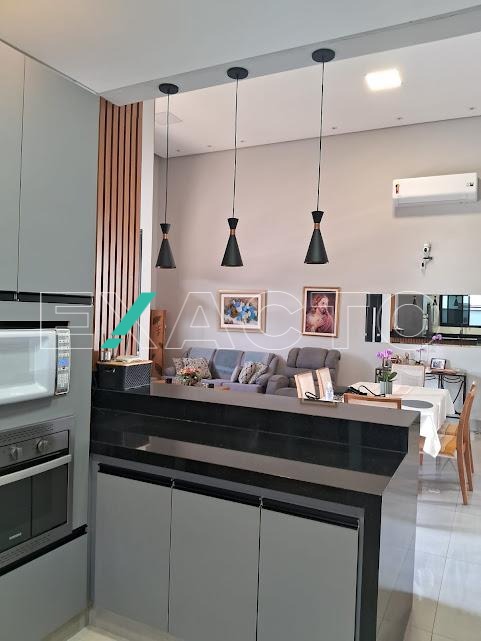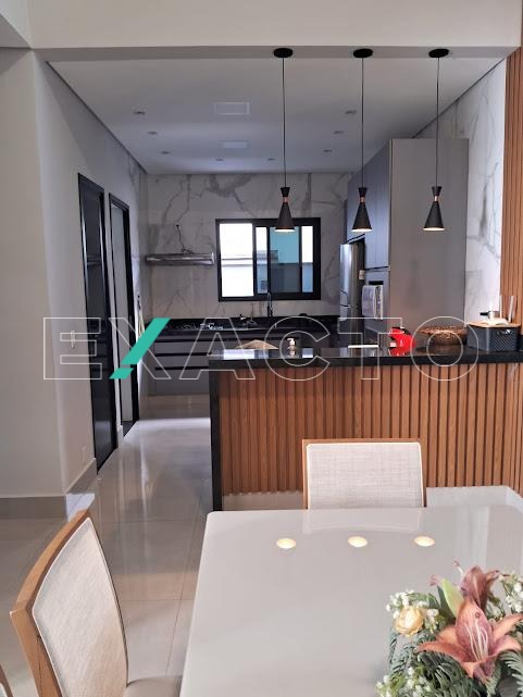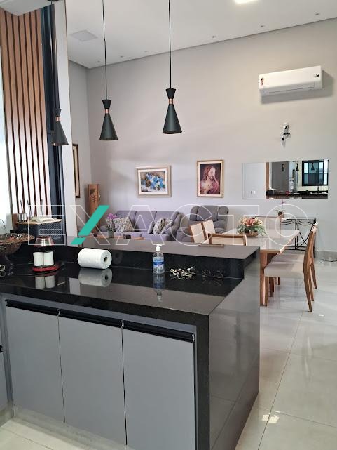 Casa á venda com 3 suítes sendo 1 master com closet, amplo banheiro com 2 cubas, armário de apoio, ar condicionado, 2 suítes com armários planejados, (1 com ar condicionado), sala 2 ambientes, cozinha americana com armários planejados, despensa.