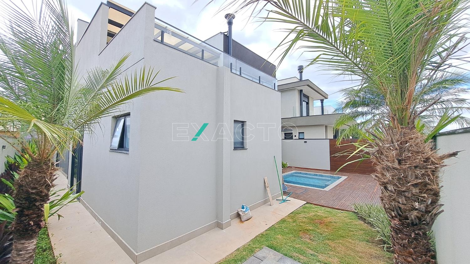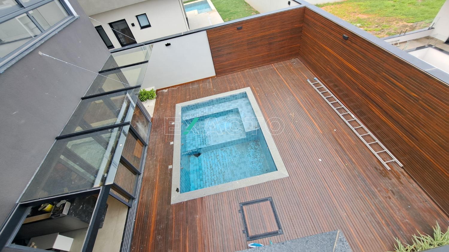Quintal ainda com ampla área verde e piscina.