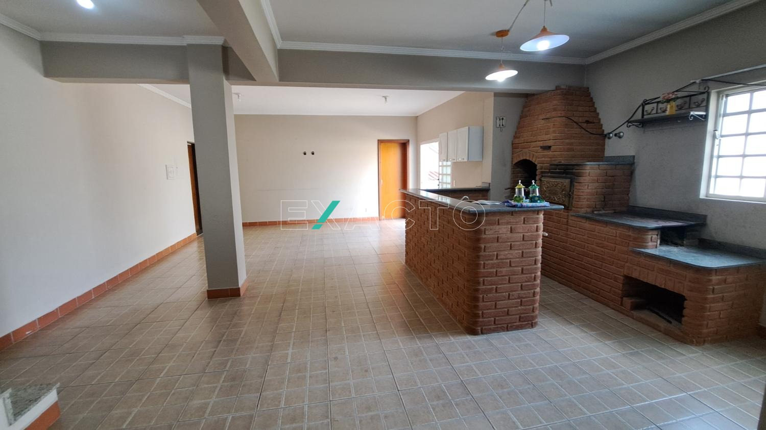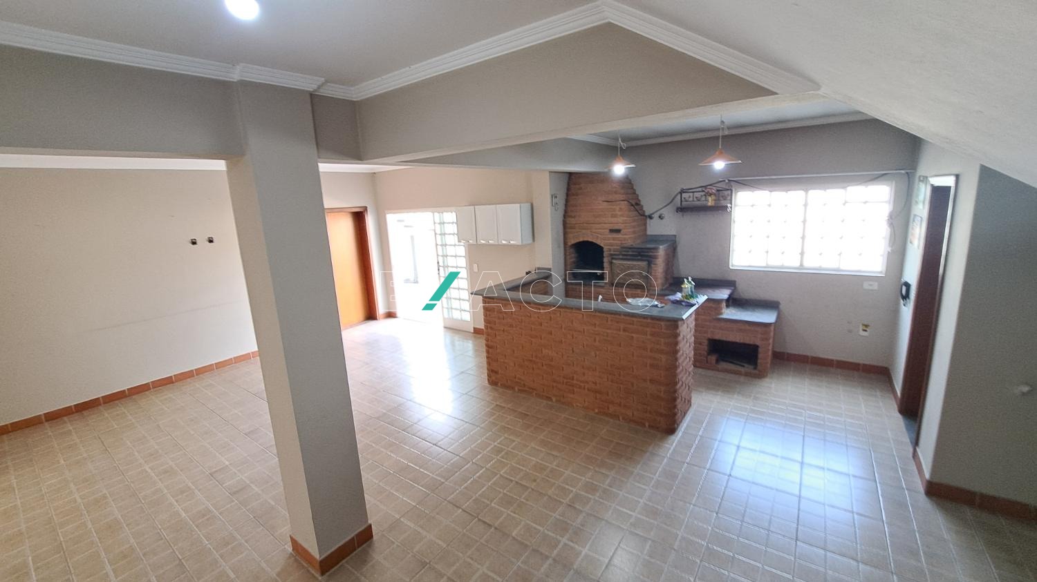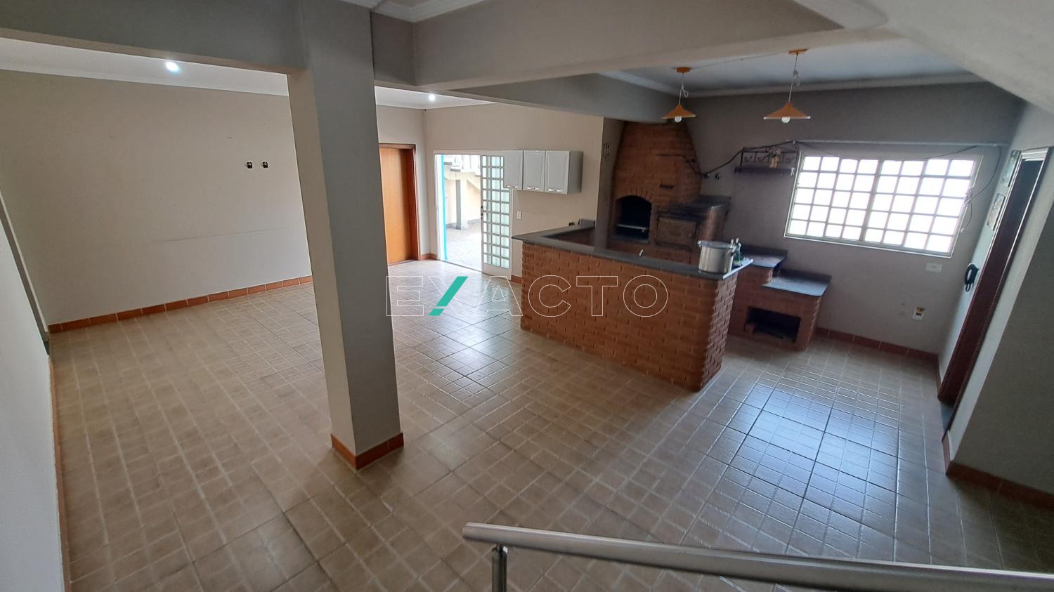 Pavimento inferior o imóvel conta com um salão de área gourmet, churrasqueira, banheiro.