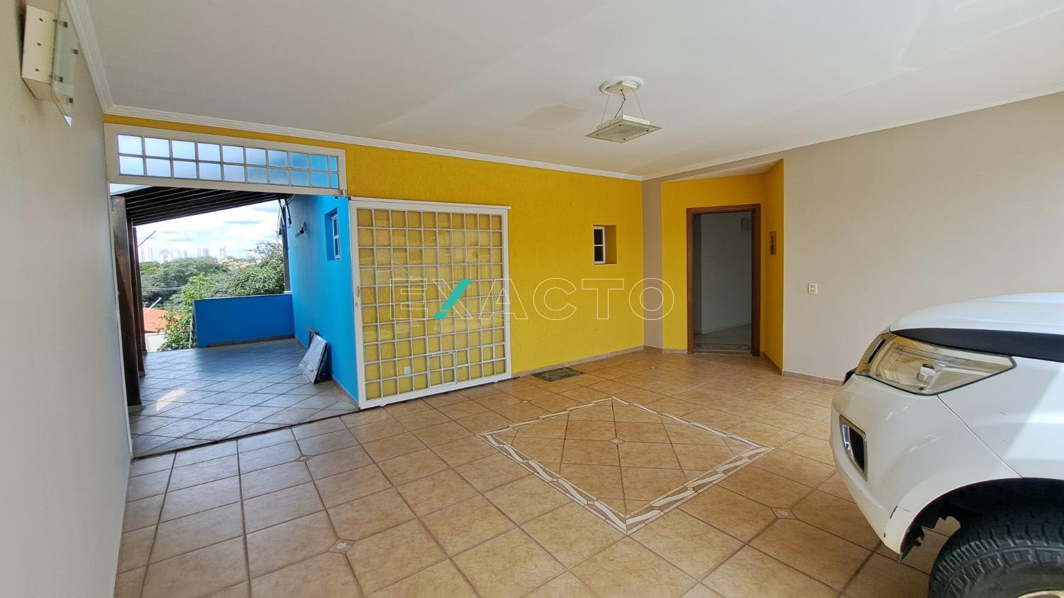 Garagem para 4 carros com portão eletrônico.