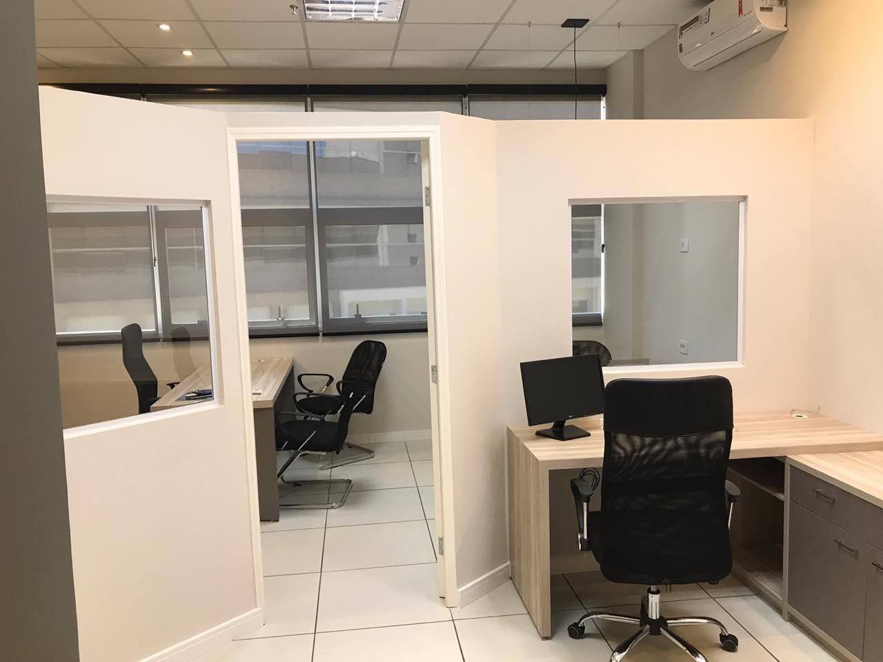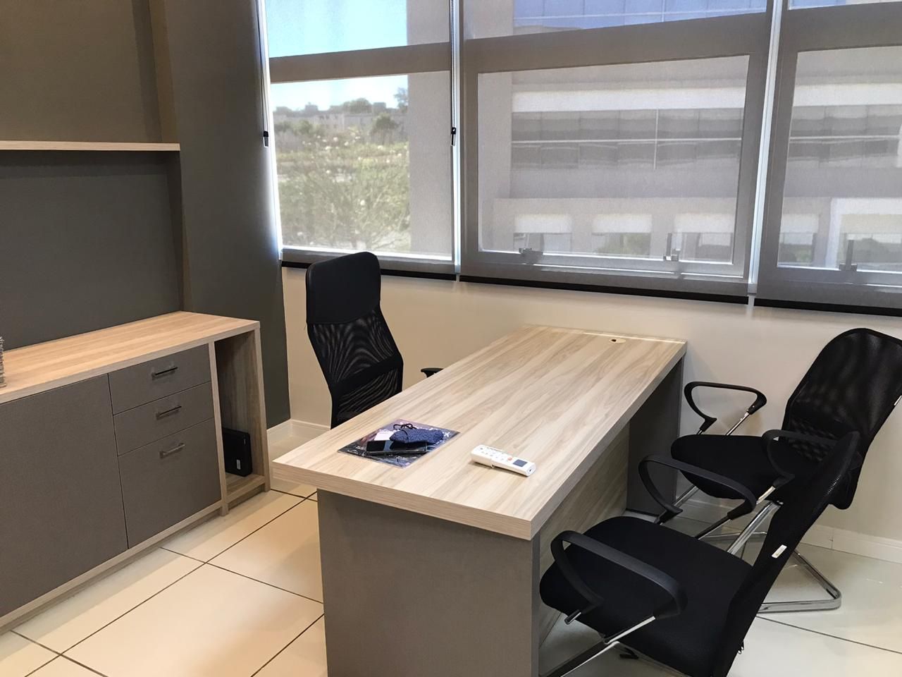Sala comercial, mobiliada, Ar condicionado, 42 metros, 01 banheiro, sol da manhã, condomínio fechado, ótima estrutura no condomínio, segurança, com 01 vaga. Sala montada e pronta para trabalho e ocupação.
