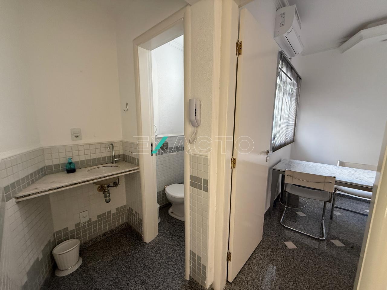 Sala comercial 50m2 de área útil, com recepção, 1 banheiro e 2 salas, sendo uma com varanda. Todos os ambientes com ar-condicionado.
