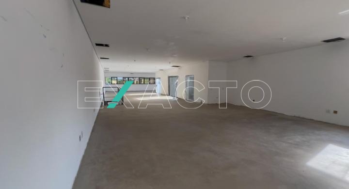 580m² de área construída divididos em 2 pisos de 290m² cada, com salão amplo em vão livre, pé direito 4,5m, copa, 4 banheiros, 8 vagas, porta de aço automática.