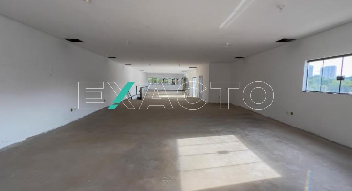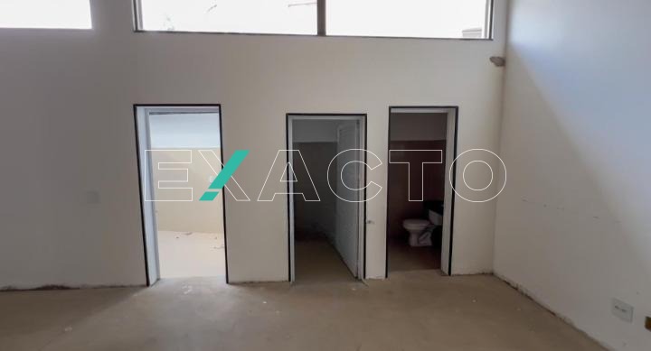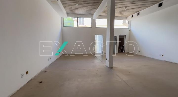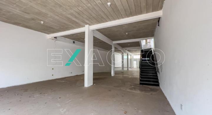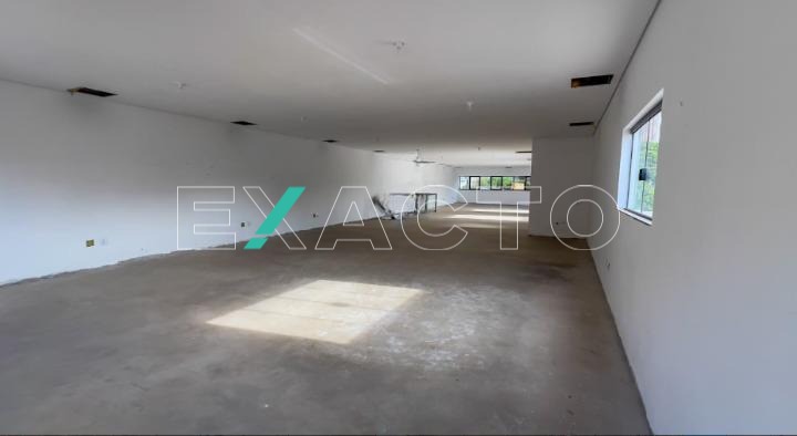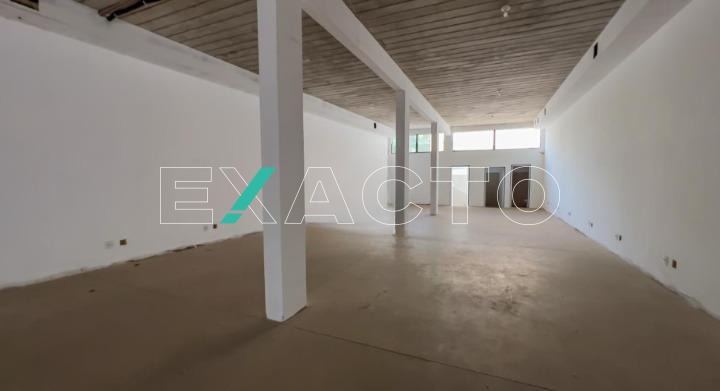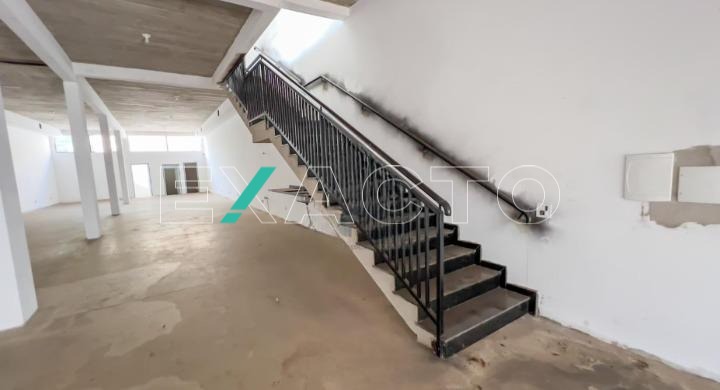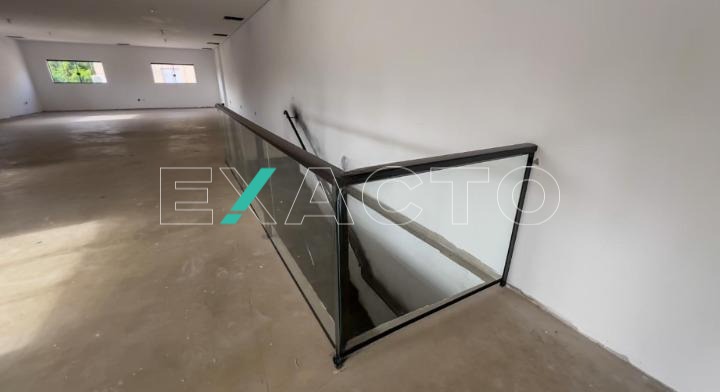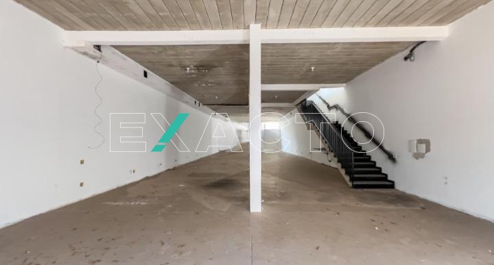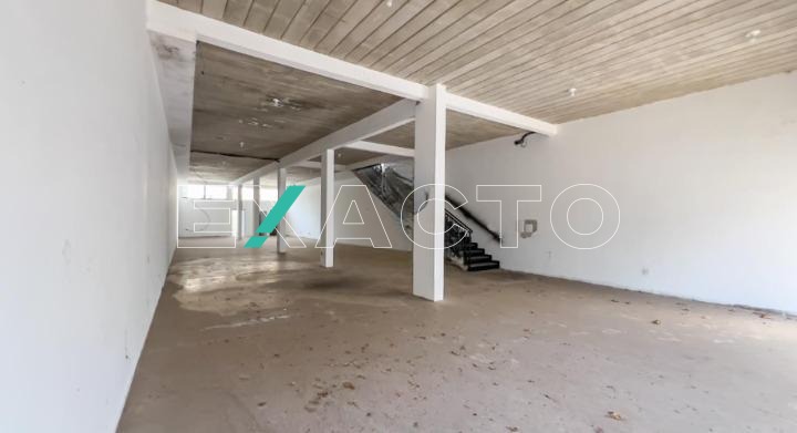 580m² de área construída divididos em 2 pisos de 290m² cada, com salão amplo em vão livre, pé direito 4,5m, copa, 4 banheiros, 8 vagas, porta de aço automática.