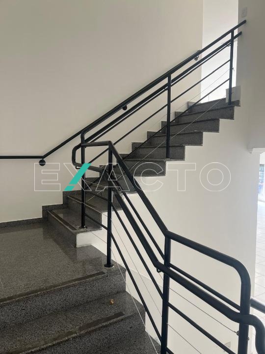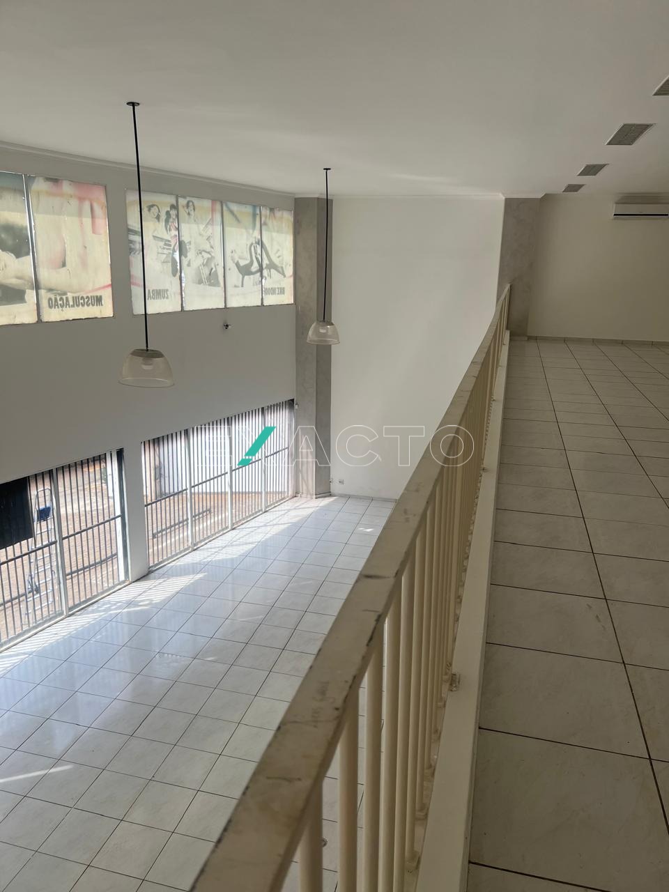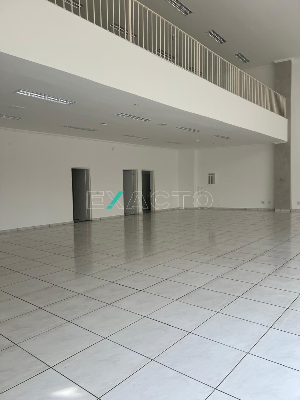 No mezanino, com 120 m², pé direito 6m², 7 vagas frontais.