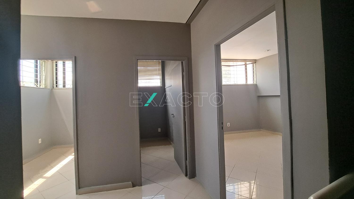 Piso superior com 3 salas em drywall e banheiro.