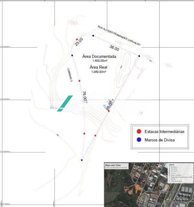 Excelente terreno residencial, com 1900m² de área, plano, com trabalho de topografia recente.